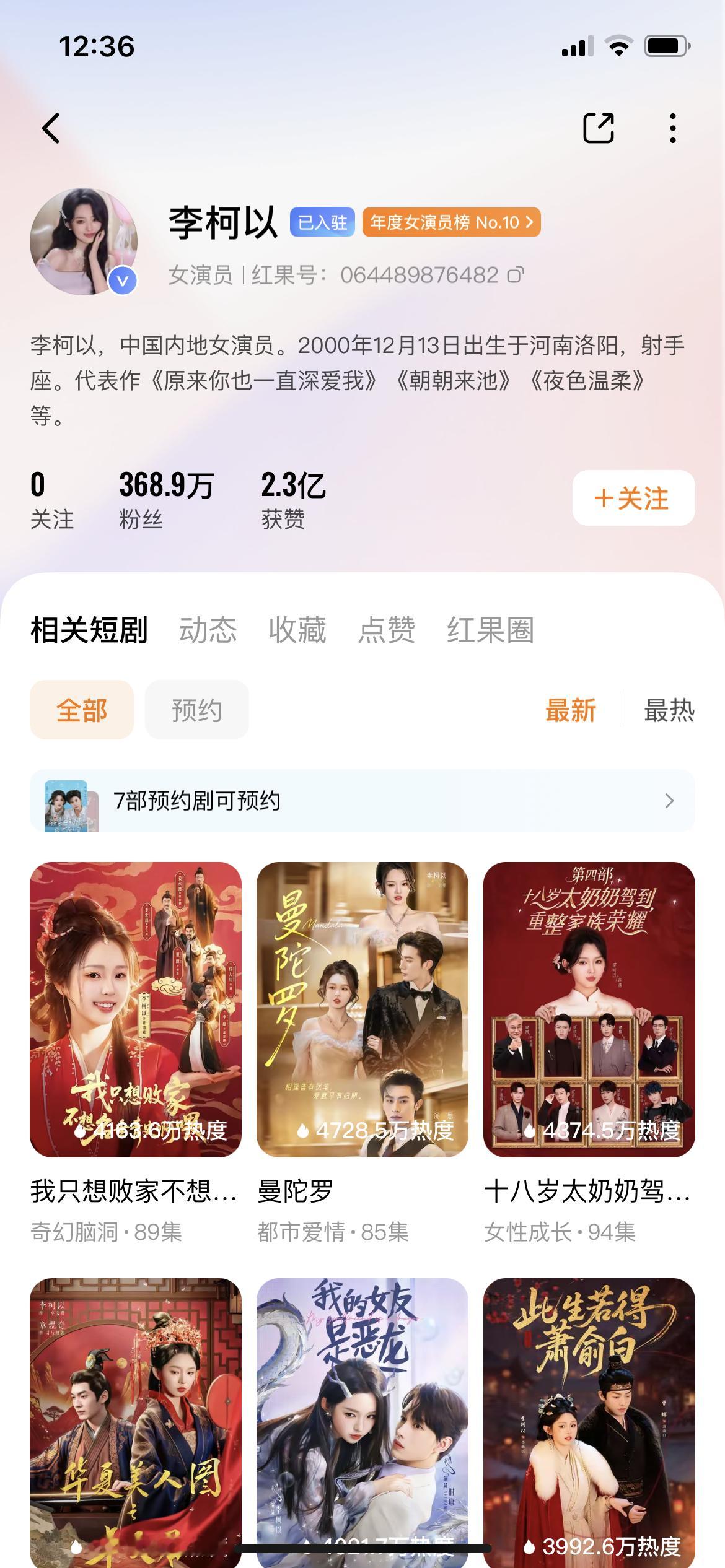 陈添祥X李柯以2025年2月11日《朕与她》2026年4月23日《我才不会爱上你呢》从籍籍无名到巅峰相见红果粉丝唯二破300万的两位