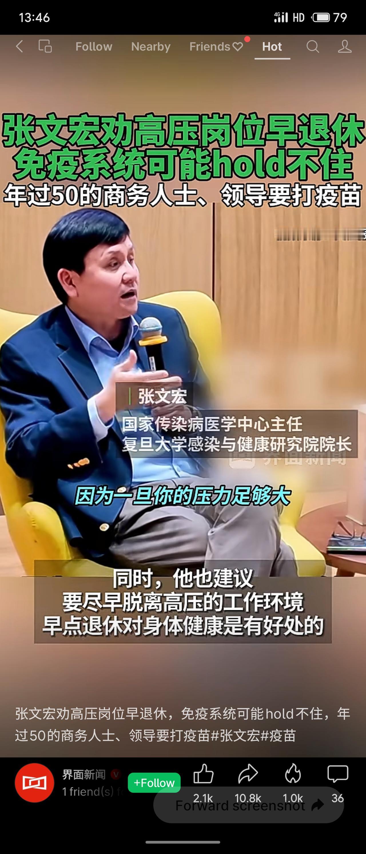张文宏近日建议:50岁以上、身处高压岗位(如商务人士、领导)应尽早退休,避免免疫系统崩溃,同时务必接种带状疱疹疫苗。压力过大会激活体内潜伏病毒,提前退休有利于健康。