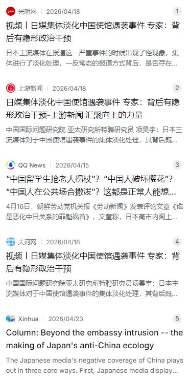 这事儿还真不是空穴来风。2026年整个4月,日本那边可没闲着。据央视新闻和光明日报报道,3月24日,一名日本陆上自卫队的现役军官,姓村田名晃大,竟然揣着一把31厘米的长刀,直接翻墙闯进了咱们中国驻日本的大使馆,公然威胁咱们外交人员的人身安全。这可是突破国际关系底线的恶性事件。你猜日本主流媒体怎么报道的?集体淡化处理,有的干脆装没看见,轻描淡写翻个篇儿,仿佛这不是暴力闯馆,而是谁家喝醉了敲错门。咱们这边的专家项昊宇分析得很透彻,日本媒体这种选择性失明,背后既有隐形的政治干预,也暴露出他们社会深层次的结构性弊端——反华在那儿已经快成“政治正确”了。