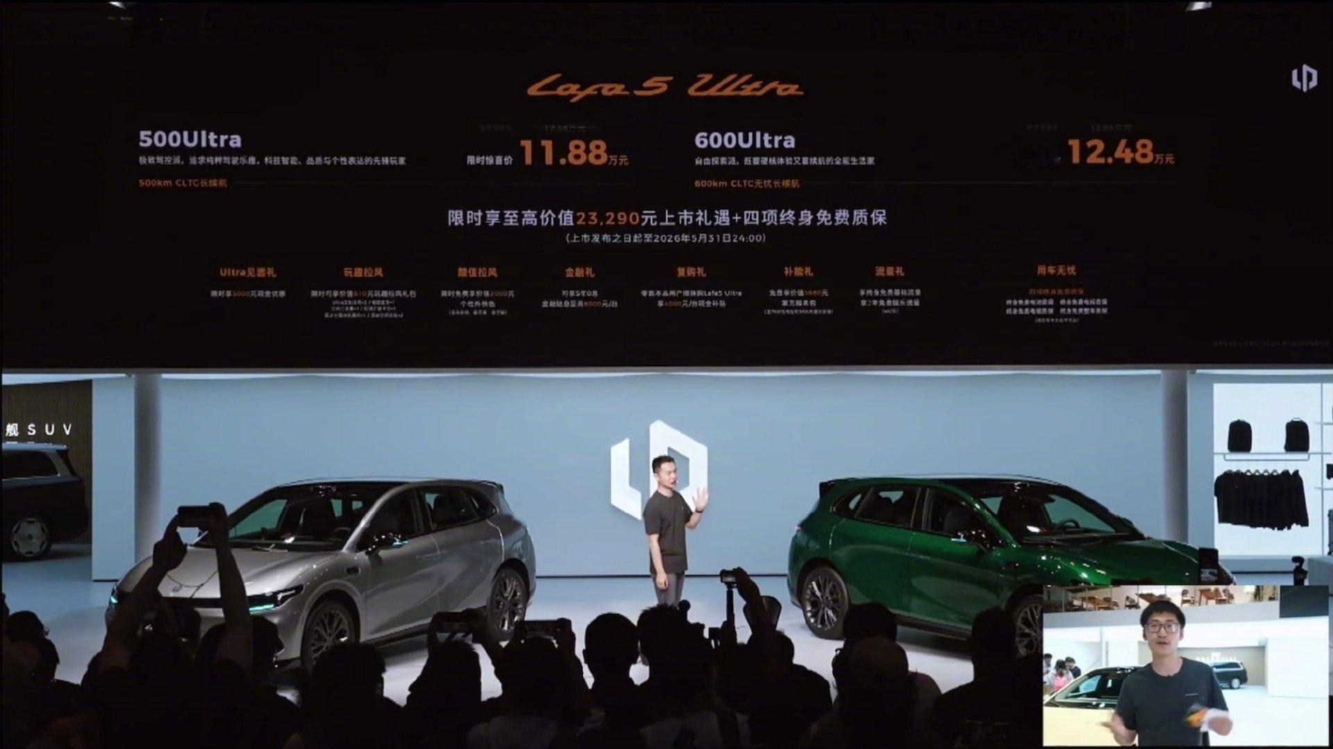 开Lafa5Ultra自己爽就对了零跑Lafa5 Ultra北京车展上市,11.88万起。高颜值宽体造型,车内质感拉满;180kW黄金动力,5.9s零百加速,运动底盘调校操控十足。 颜值、驾控、性价比全在线,好开不贵,自己爽就对了。