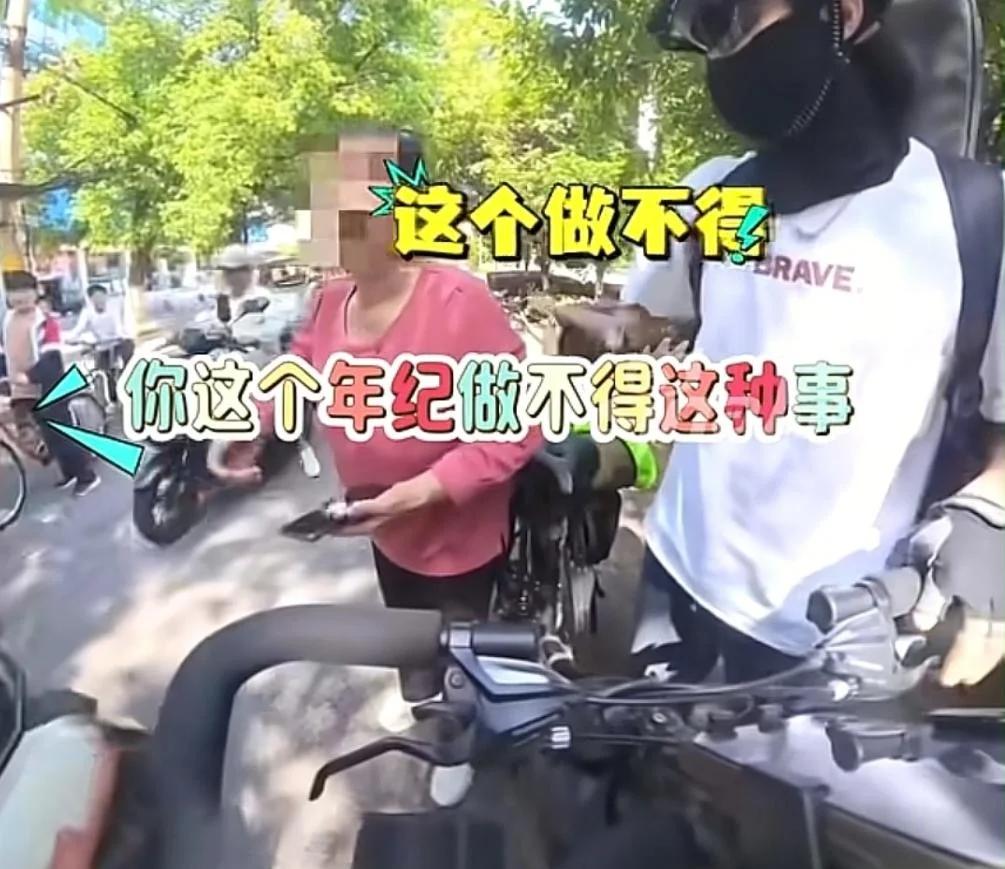 小伙骑着摩托,车头支着手机拍短视频。前方大妈突然摔倒,小伙赶紧去扶,老人大声说“就是你撞的我。”小伙说“我有录像。”大叔说“小伙离你有5米。”原来大妈踩到了一块青苔上。老人儿子来了,给小伙鞠躬。
