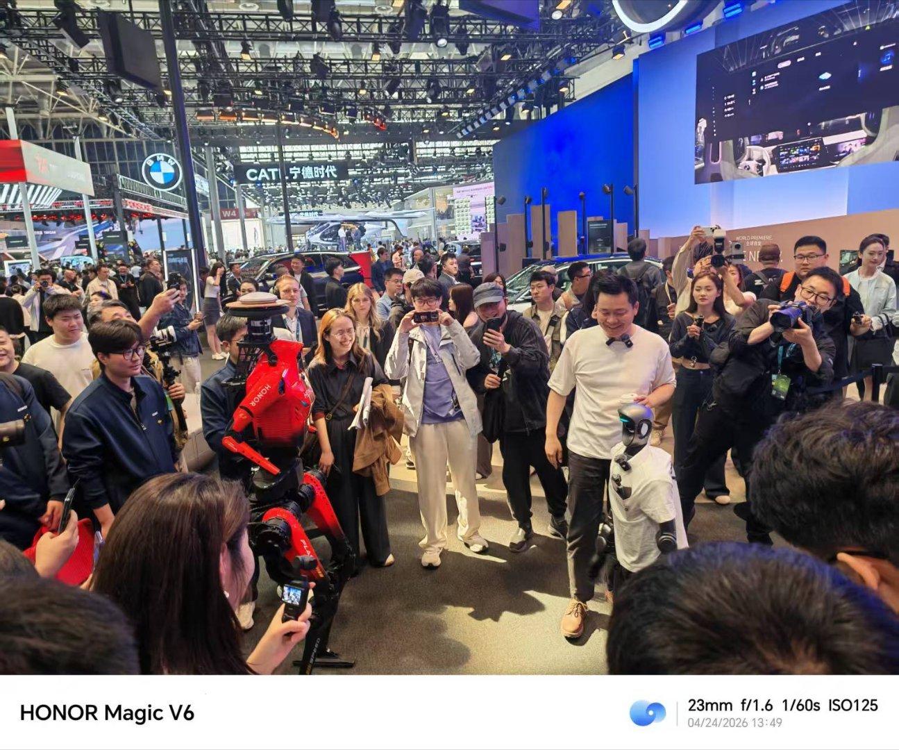 在北京车展俨然已成荣耀顶流代言人,现场人山人海,争相拍照合影。今天荣耀机器人夺冠后首次亮相北京金融街智绘春光嘉年华和北京车展,成为全场最靓的仔,豪车都成了闪电的背景。