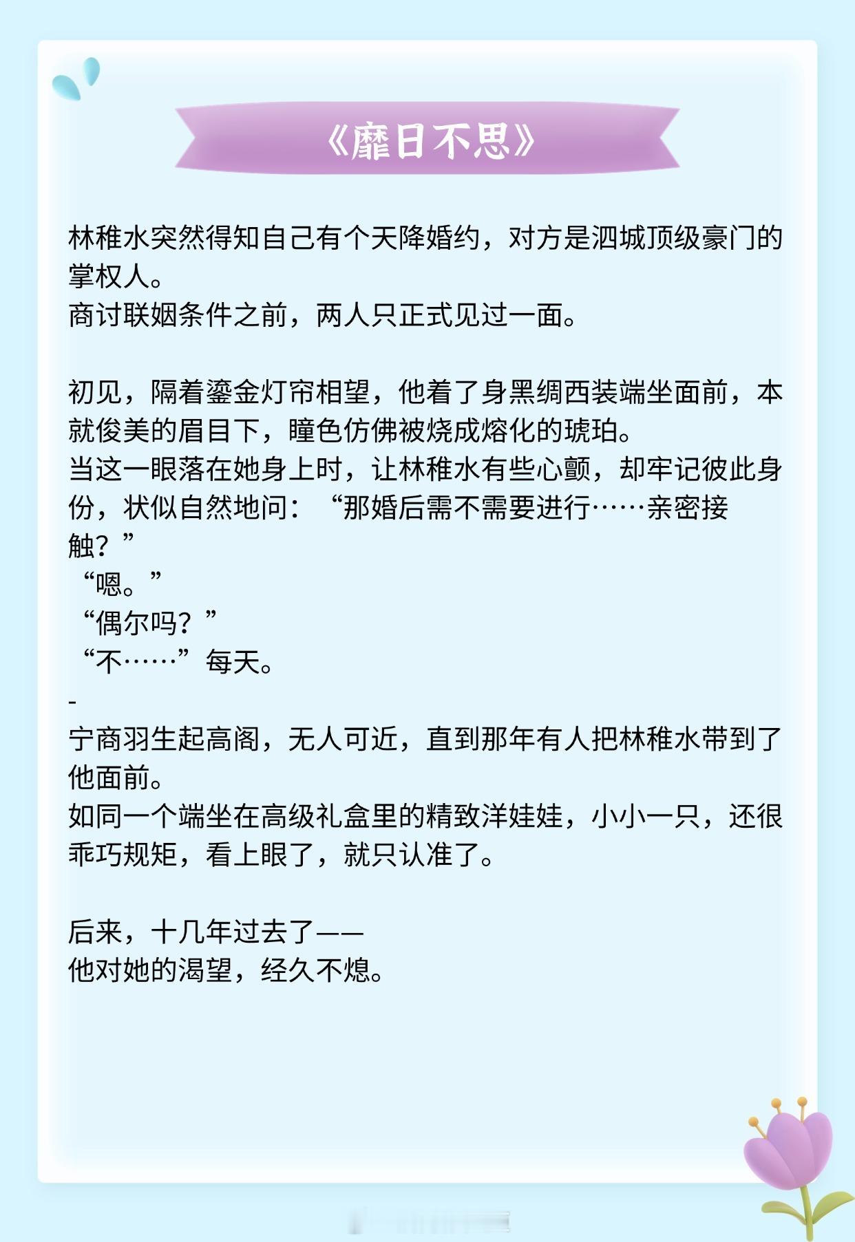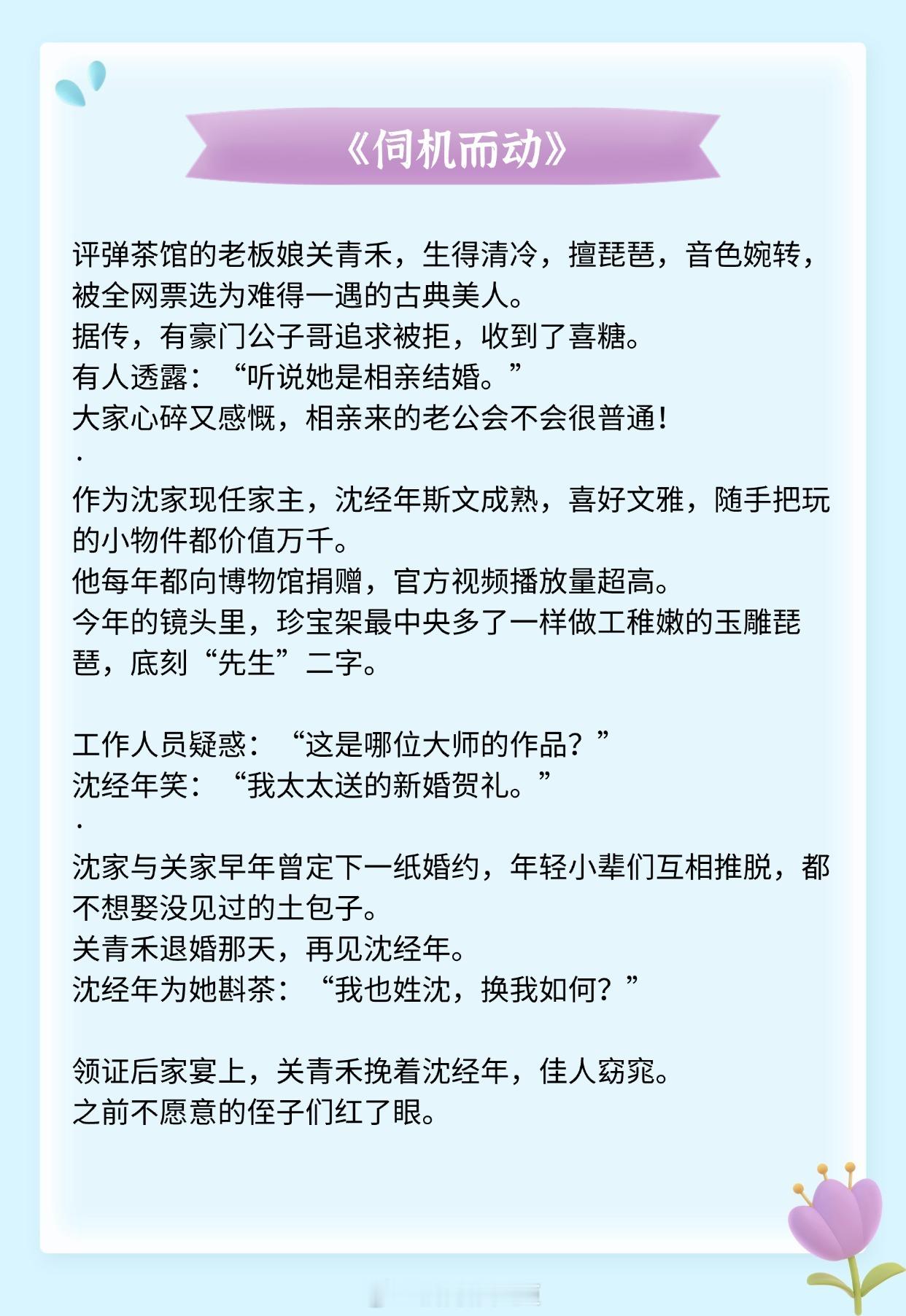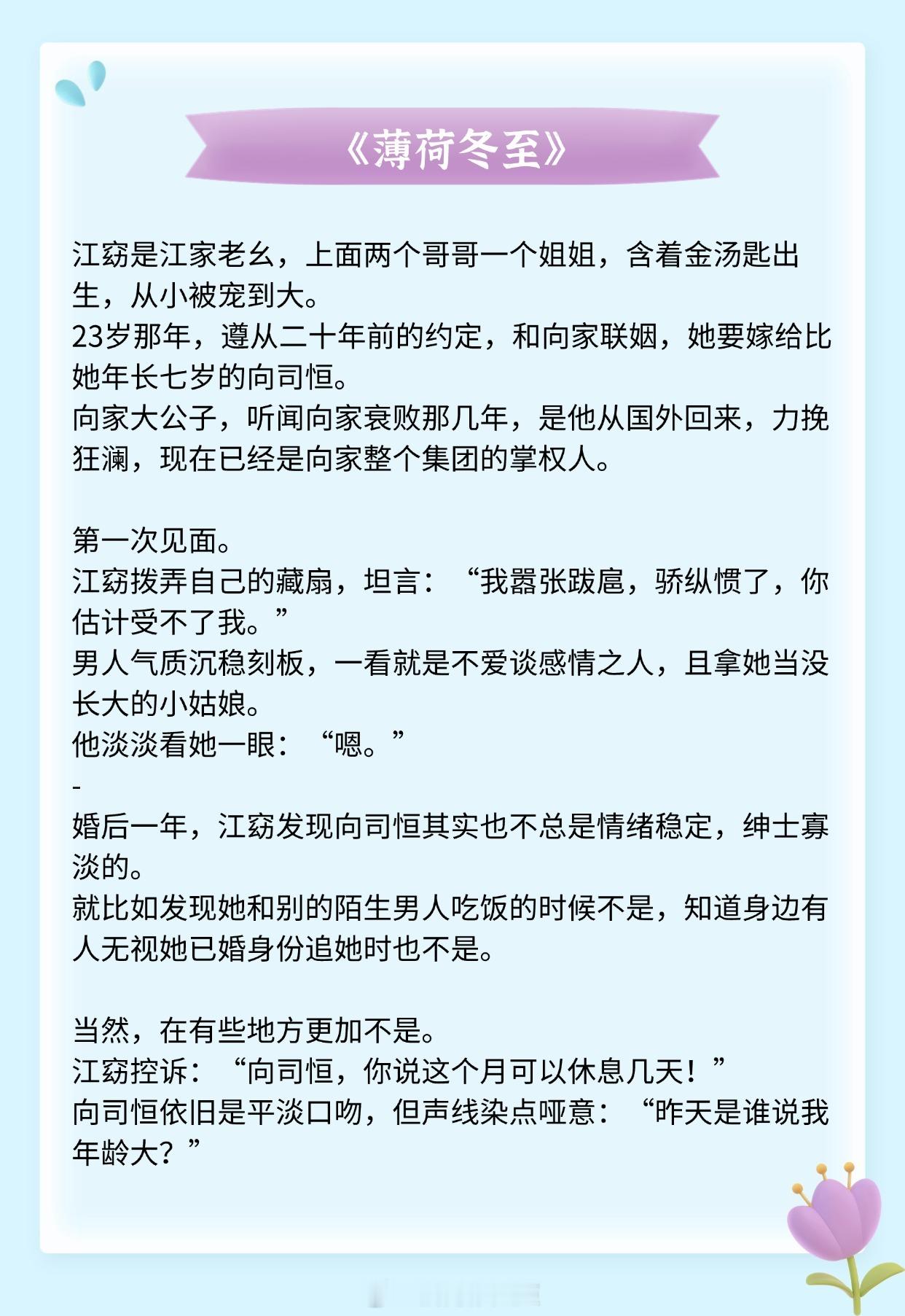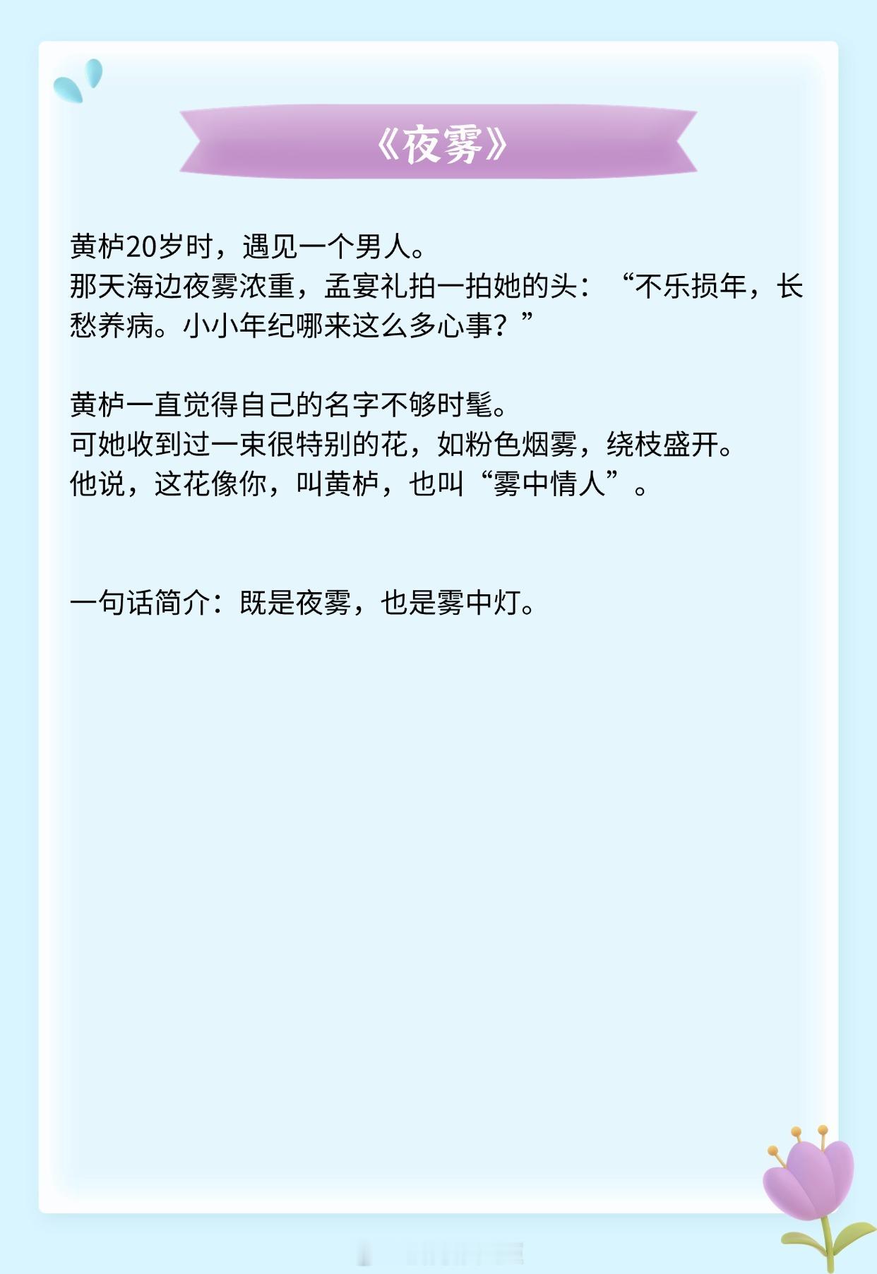 《薄荷冬至》作者:州府小十三《夜雾》作者:殊娓《伺机而动》作者:姜之鱼《或许春天知道》作者:明开夜合《流俗雨》作者:怀南小山《靡日不思》作者:今婳推文推文言情小说推荐