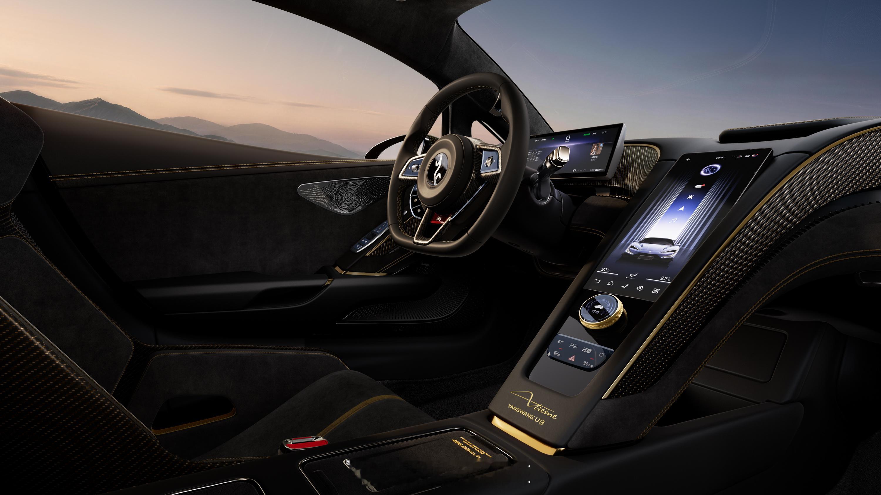 U9X“破晓时刻”,全球第一台按量产标准来的高定版,限量30台。漆面里融了微米级金粉,还用上了非遗大漆打磨工艺,不同光线下能复刻日出破晓那种流光溢彩。设计灵感就是U9X刷纽北、破496km/h纪录那天清晨的第一缕阳光。这已经不是车了,是行走的艺术品。