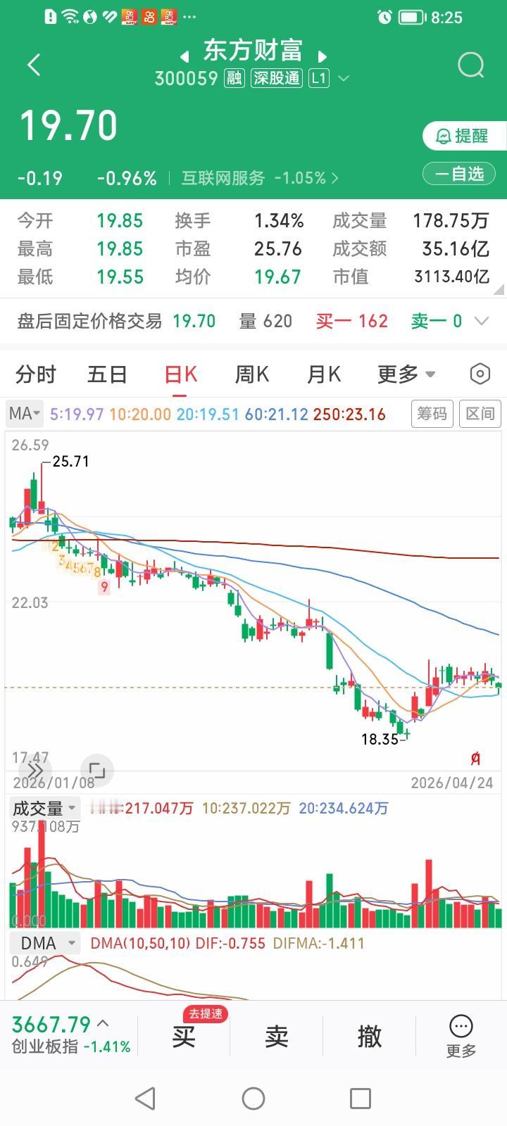 如果按一季报业绩计算,东方财富最新动态市盈率为20.83倍。这个估值应该不算高估吧。