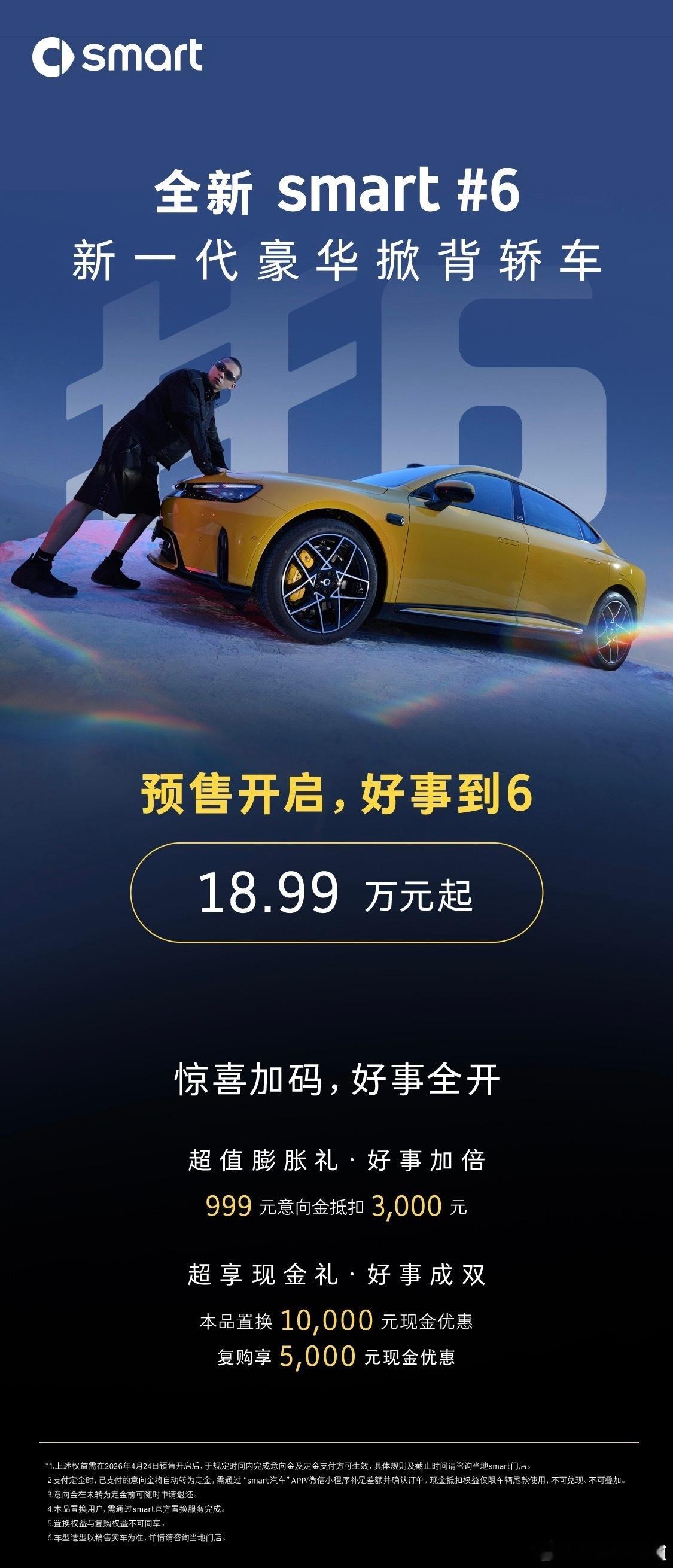 总结:全新smart精灵6号以豪华掀背之姿,融合奔驰设计、吉利技术、越级空间与强悍性能,既满足年轻实力派的品味追求,又适配家庭用户的实用需求,成为新一代合资标杆车型。