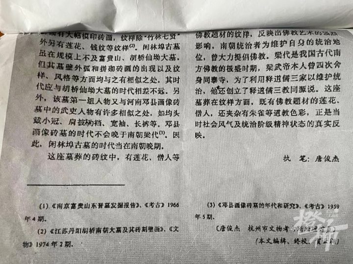 橙柿记者也在网络上检索到了这份考古报告《浙江省余杭南朝画像砖墓清理简报》。