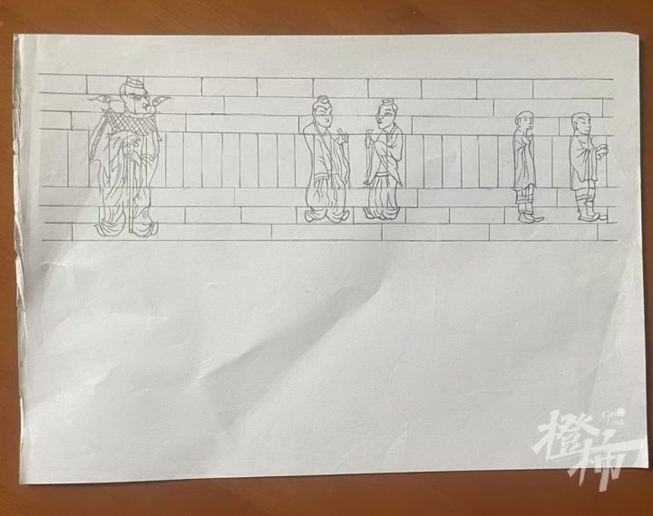 “最令我感动的,这座墓中竟然有这么多画像,我以前在美院学过油画,墓中的画砖画风很飘逸,线条粗细表达很有艺术功底。”