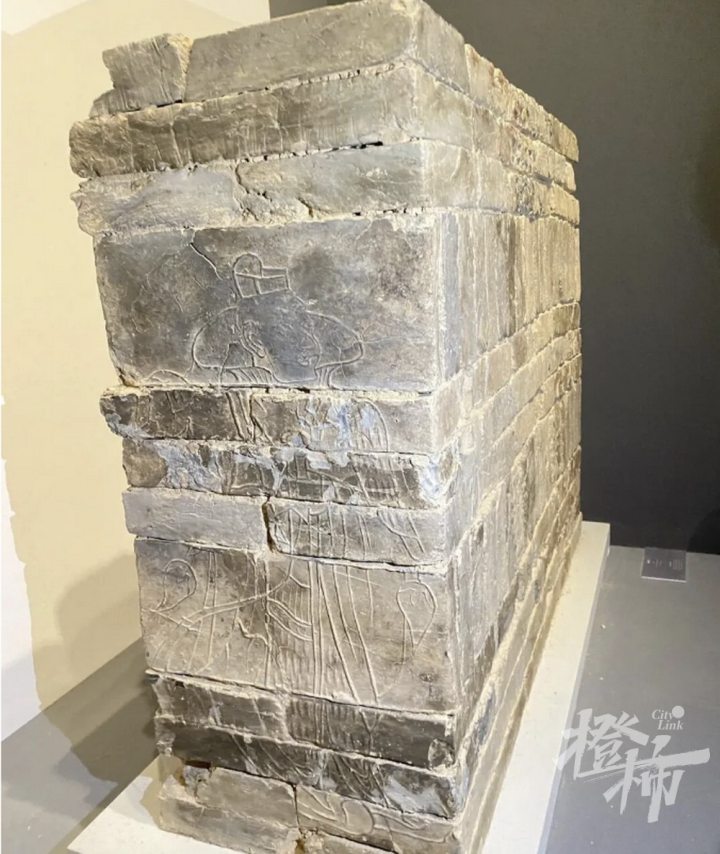 考古部门当时说发掘后想在杭州重建,每个画像砖都编号了。多年后退休了,再询问此事,结果答复这个砖还在仓库里。