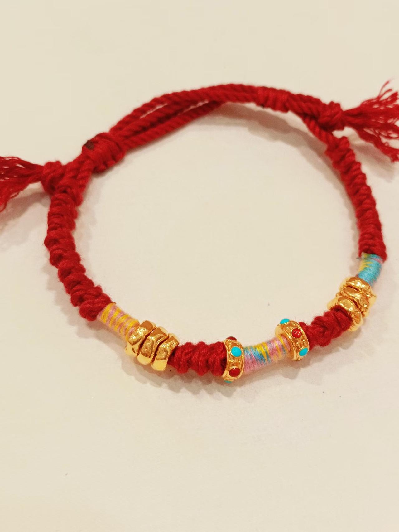 复古风手链,红绳与金色珠子的完美结合,彰显个性与时尚。