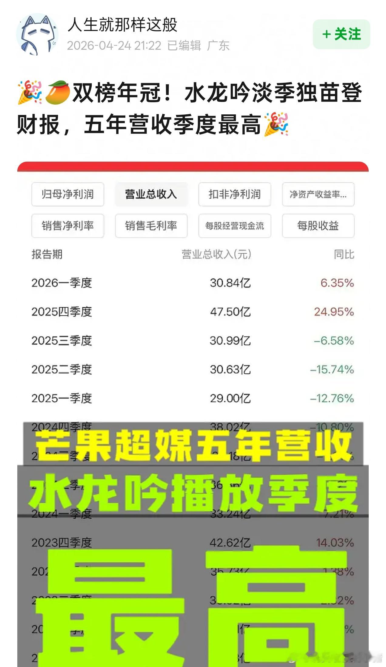 杨紫国色芳华、罗云熙水龙吟登上芒果财报
