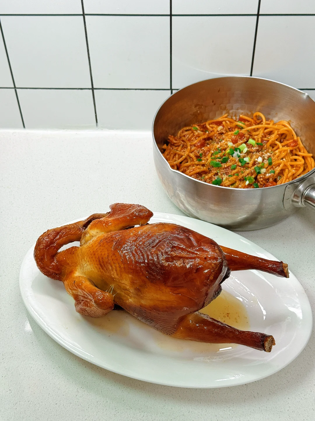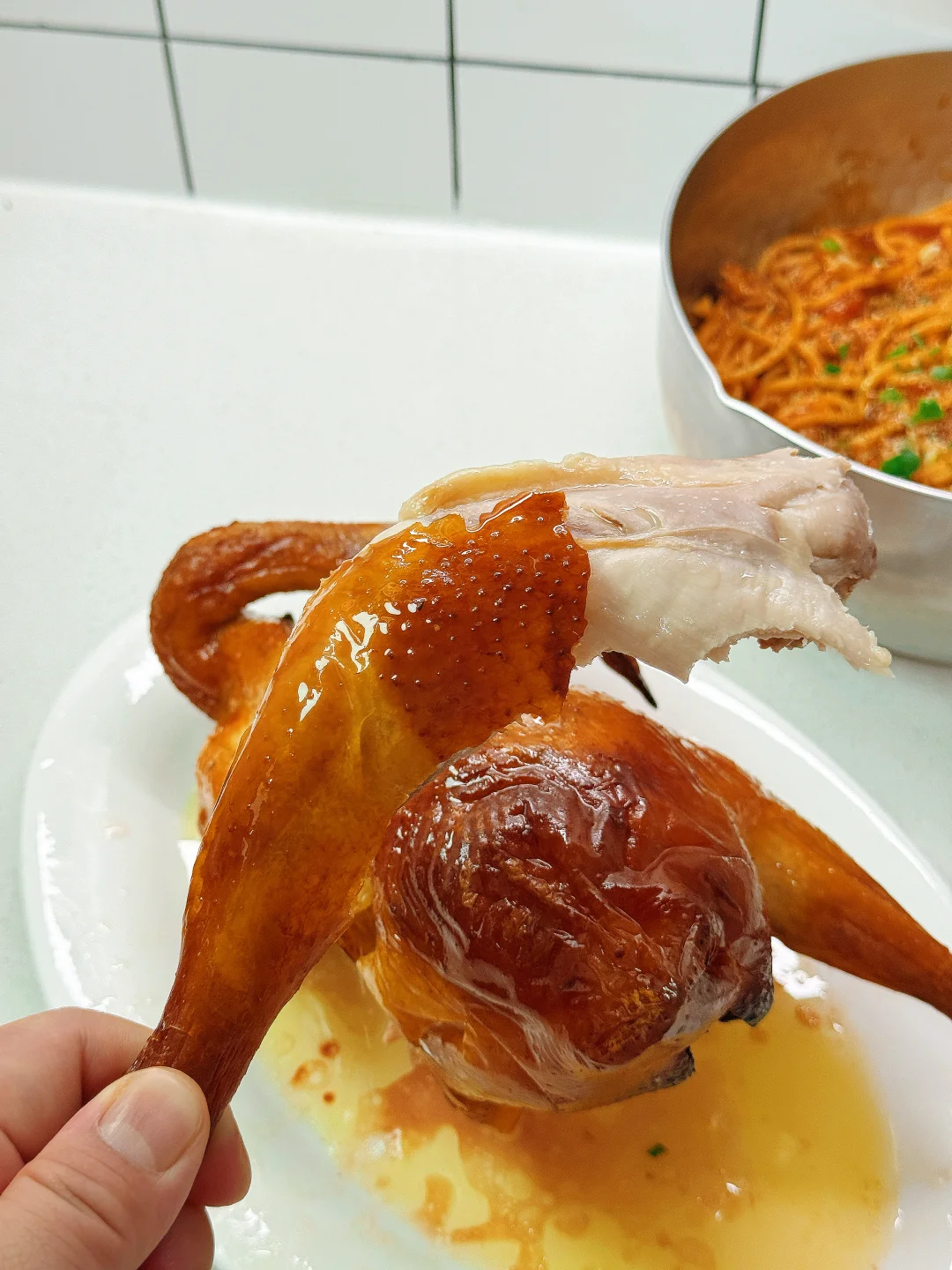 💡烤鸡皮脆爆汁,味道还好吃,做法还很方便,不用自己码味,放入空气炸锅或者烤箱就搞定了!掰开一个鸡腿汁水油水直往外溢,香气扑鼻!搭配意面吃真的棒了,一个人的追剧美食这不就安排上了吗