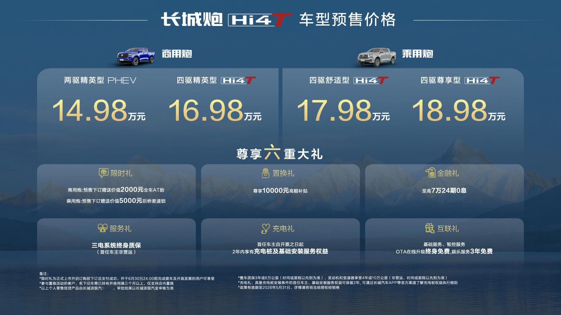 【2026北京车展:长城炮Hi4-T开启预售】在2026北京车展上,长城炮Hi4-T正式开启预售,共推出4款配置车型,包含商用炮与乘用炮,其中商用炮预售区间为14.98万-16.98万元,乘用炮17.98万-18.98万元。该车基于越野超级混动Hi4-T架构打造,采用纵置并联混动技术、机械四驱非解耦结构和非承载式车身,搭载2.0T发动机+9HAT混动变速器动力组合,综合功率310kW,综合扭矩750N·m,百公里加速6.1s,电池采用特殊布局并达到IP68级防尘防水标准。此外,车辆配备Coffee OS 3智慧座舱、多规格屏幕和静音设计,乘用炮搭载L2级辅助驾驶及哨兵模式,支持最高6kW对外放电和货箱220V电源。真新能源皮卡长城炮Hi4-T来了2026北京车展