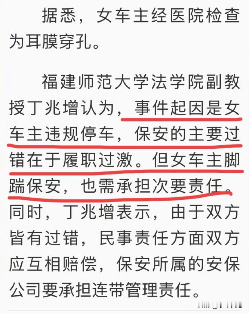 整个事件已经很清晰了:女司机违停在先,保安打人在后。如果一开始女司机就听劝走人,后面压根就不会有这些事,一切皆大欢喜。
