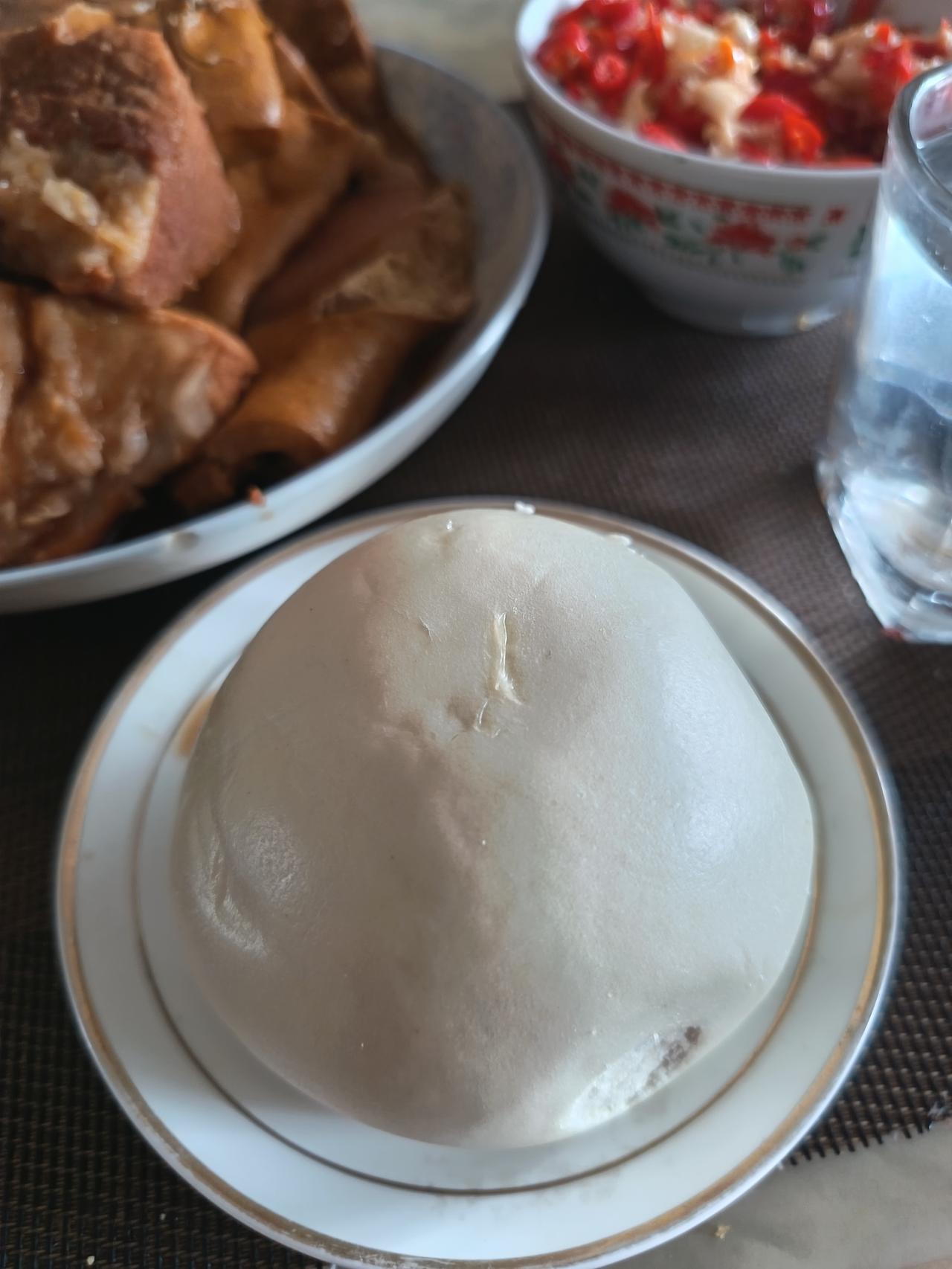 我盛了满满一盘子(图2),又配了一点辣椒酱和一个馒头。