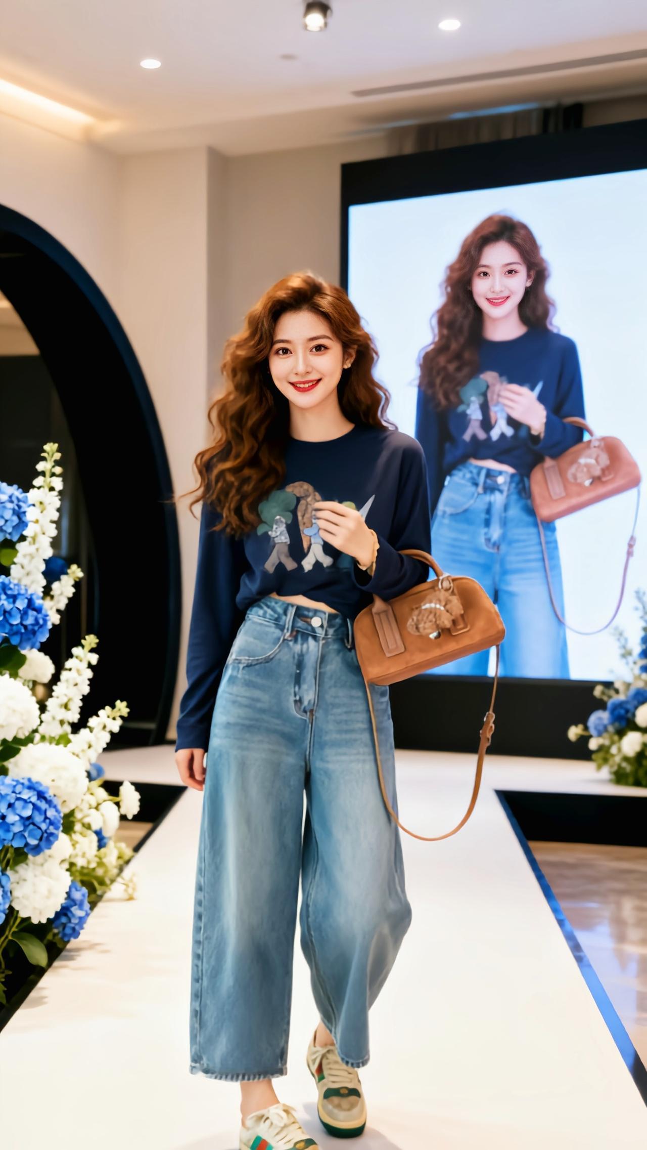 牛仔裤穿搭 牛仔裤yyds 牛仔裤 爵士蓝阔腿牛仔裤 复古蓝牛仔裤返场