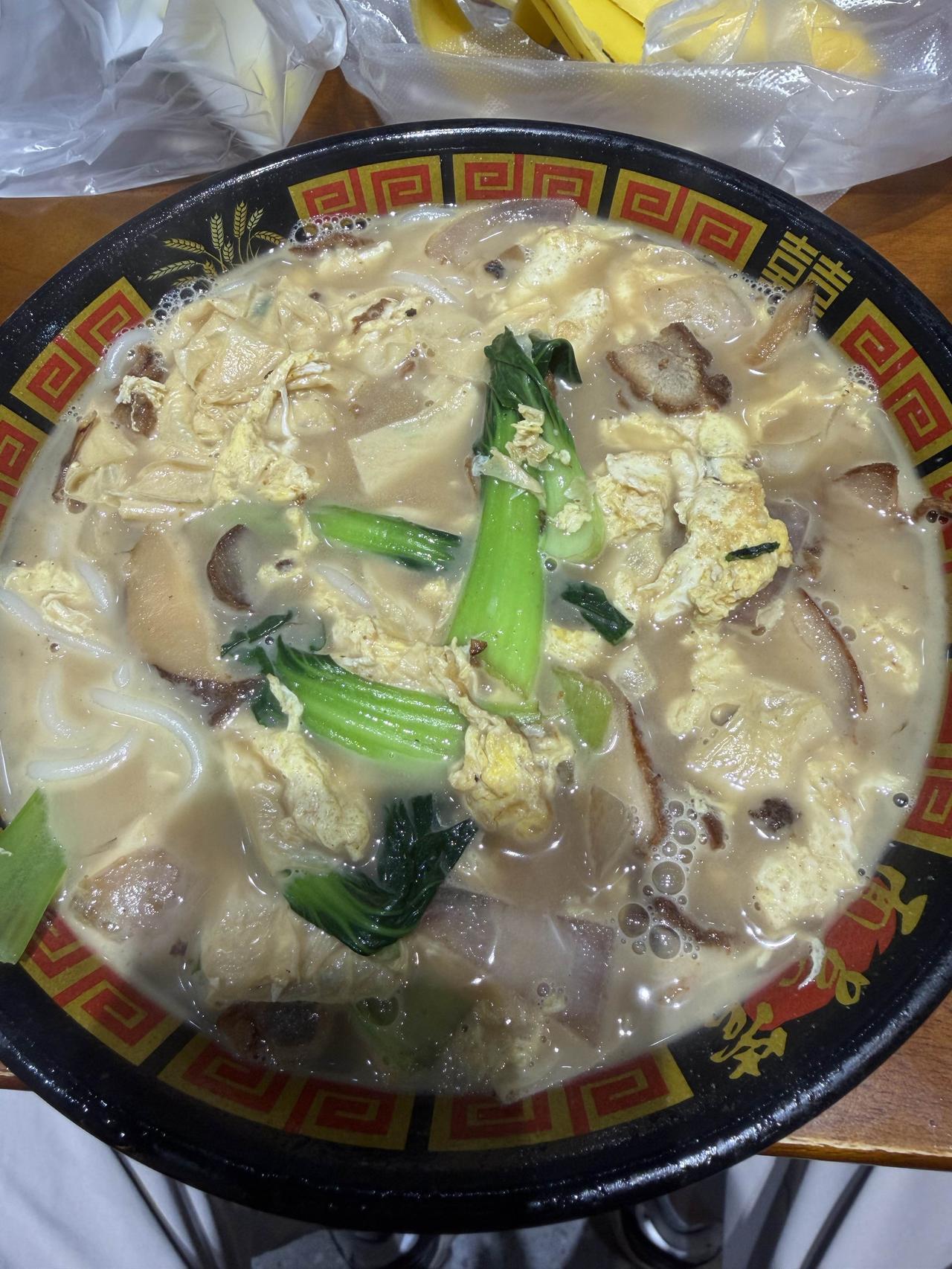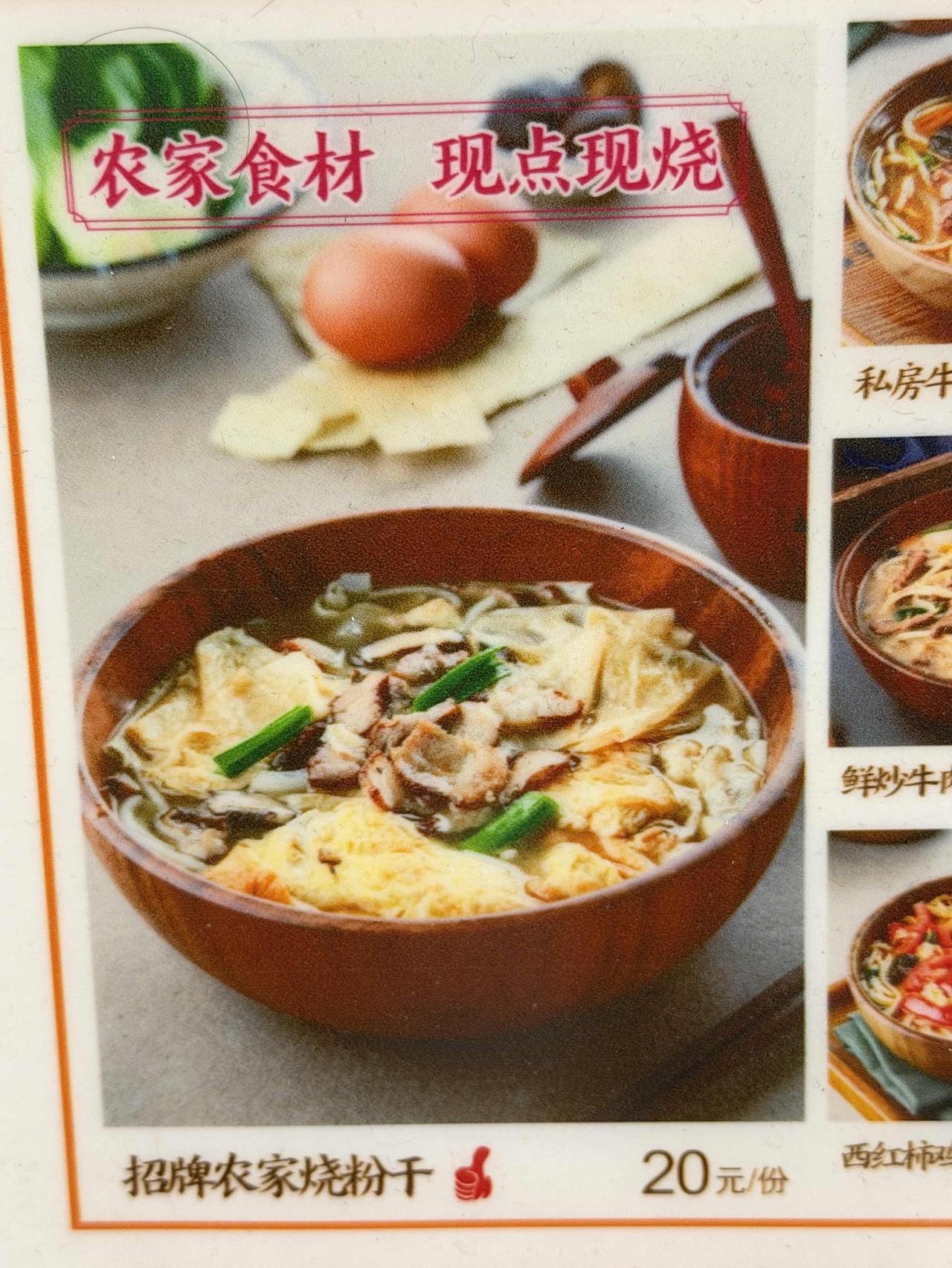 招牌农家烧粉干,一碗二十块钱,味道不错,米粉加上配菜腊肉、鸡蛋、小青菜、香菇等,吃着很爽。