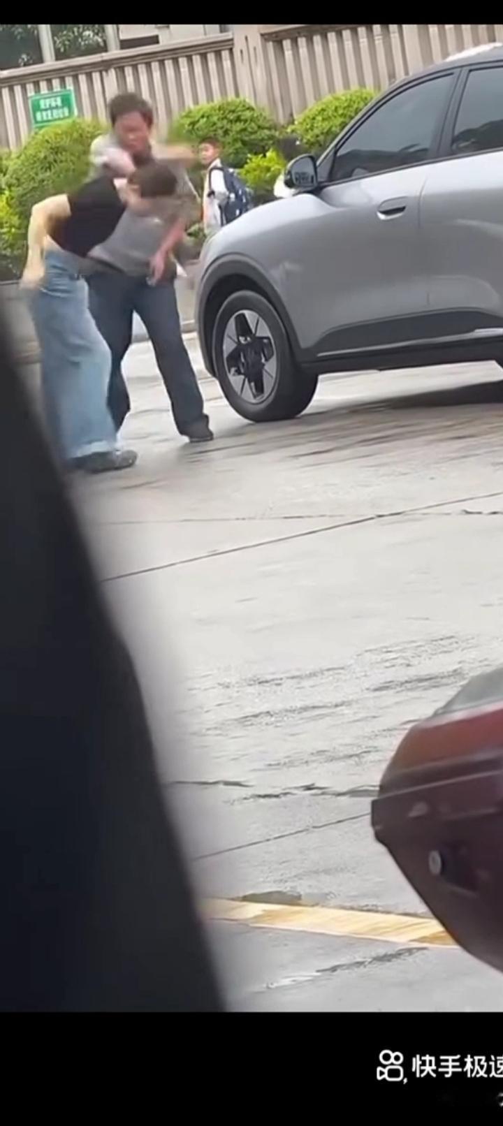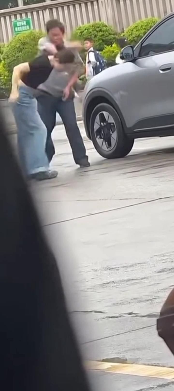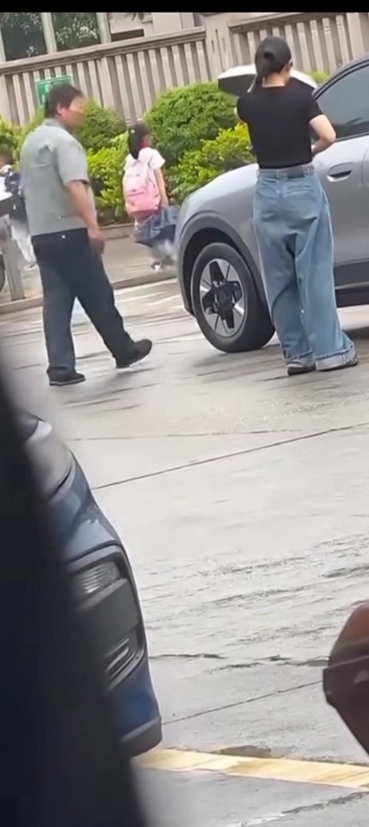 事发地附近的永安市第一中学附属学校工作人员,当事人调取现场监控视频看到,在女子脚踹保安之前,保安骂人敲车窗玻璃在先,女司机想下车,男保安(强行)关车门,夹女司机的腿。