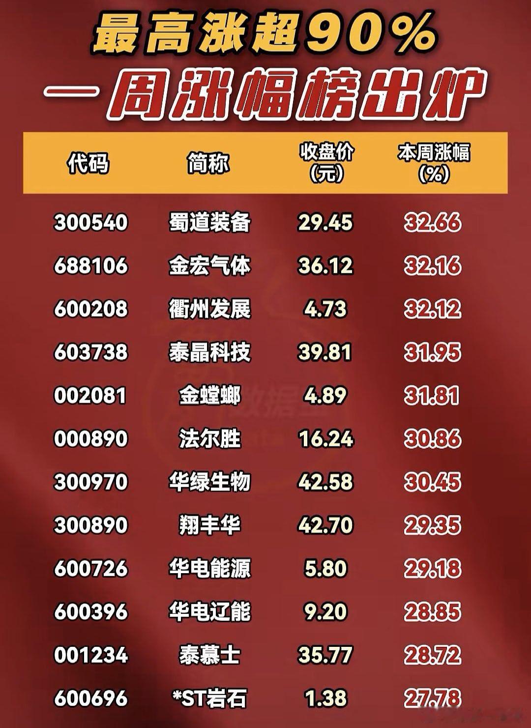 A股 本周,涨幅靠前股名单