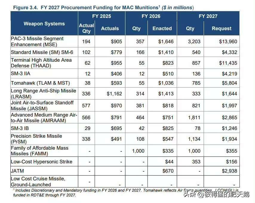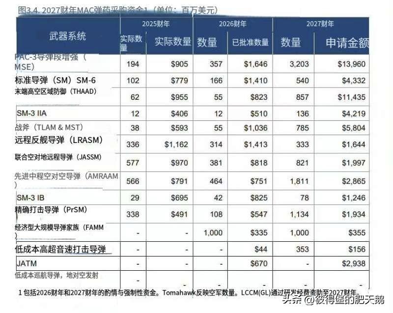 4.受伊朗导弹部队的刺激,反导拦截弹批了近5000发、JASSM采购翻倍补库存、AIM-120D空空弹采购量也翻了四倍。