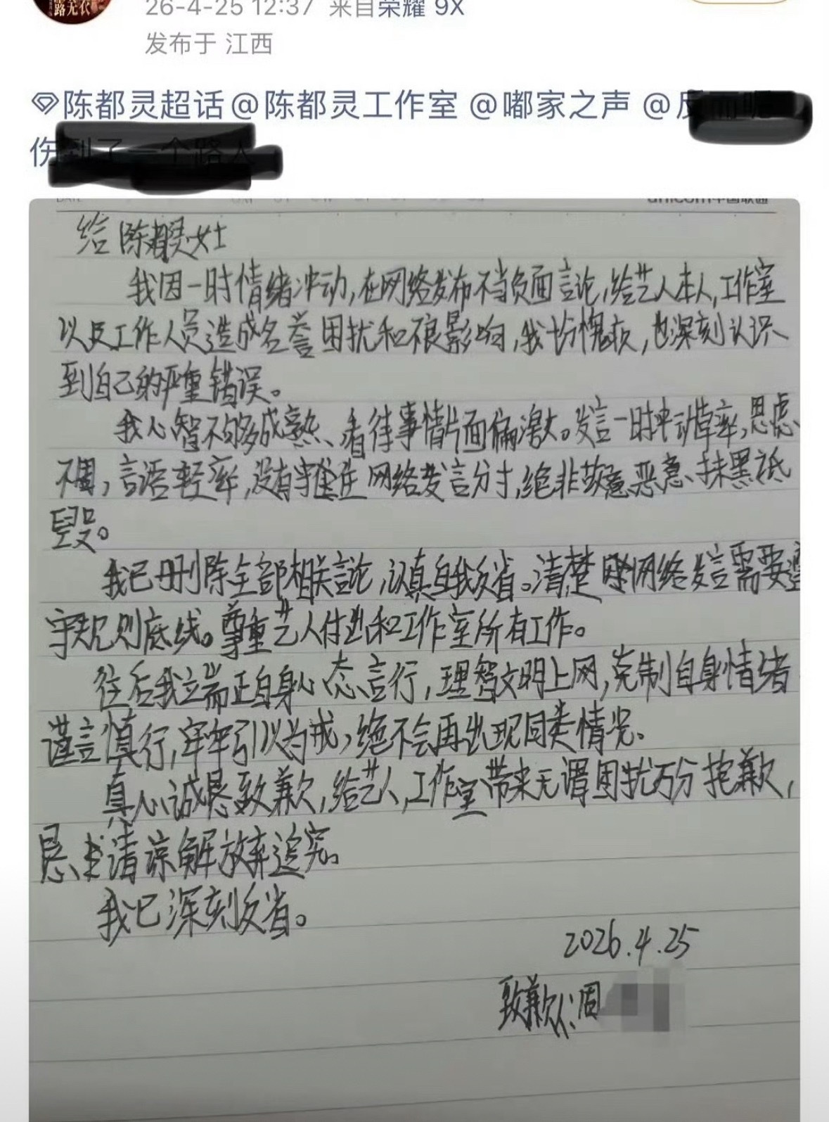 鞠婧祎和陈都灵都收到了嘿粉的手写道歉信