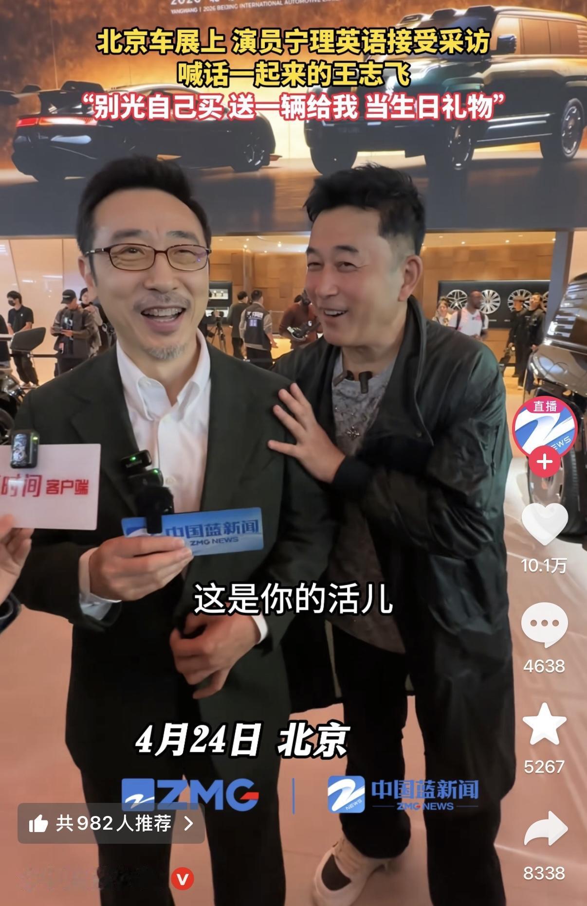演员王志飞和宁理一起去北京车展,王志飞当场下单一辆仰望U8,宁理接受采访的时候直