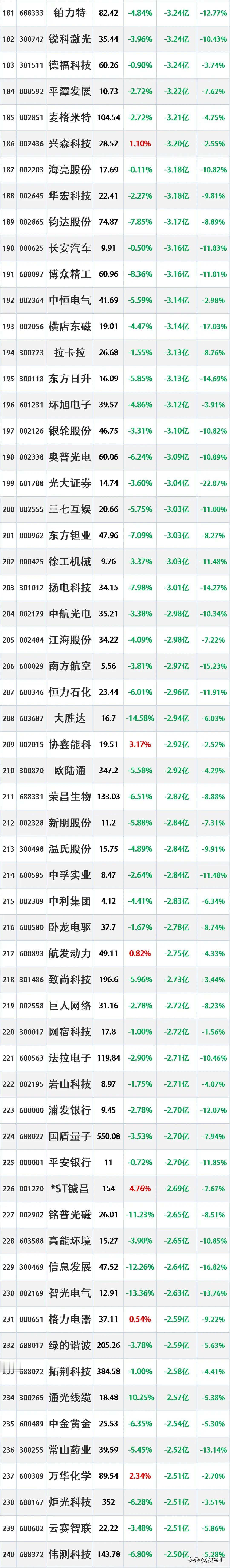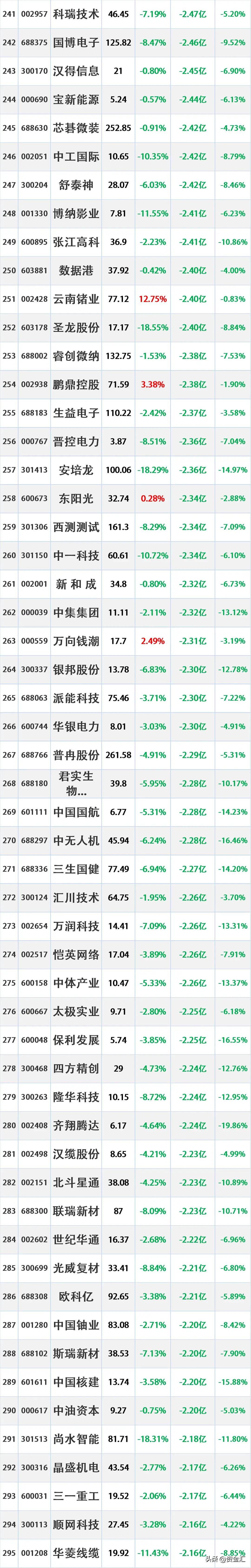 主力资金出逃,近3天主力资金合计大幅卖出这些股