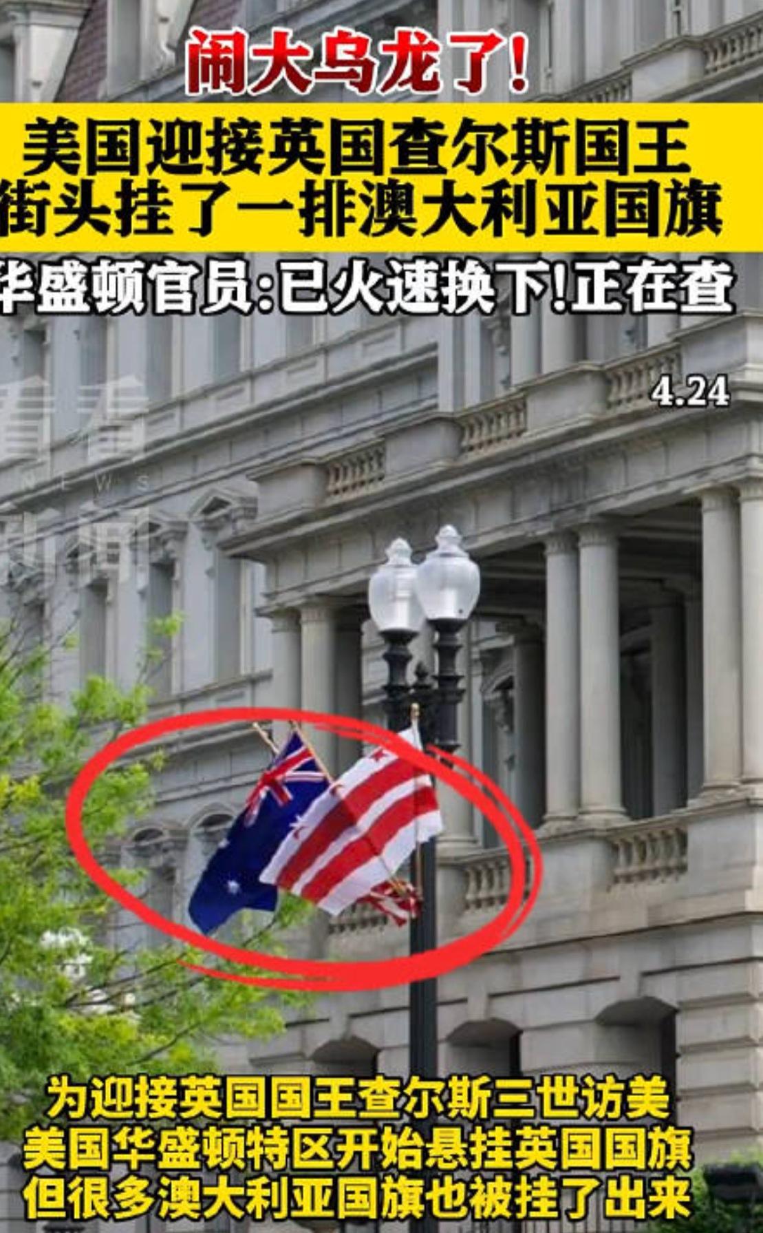 🇺🇸🇦🇺 华盛顿迎英王闹乌龙:挂错国旗,查尔斯秒变“澳大利亚国王”