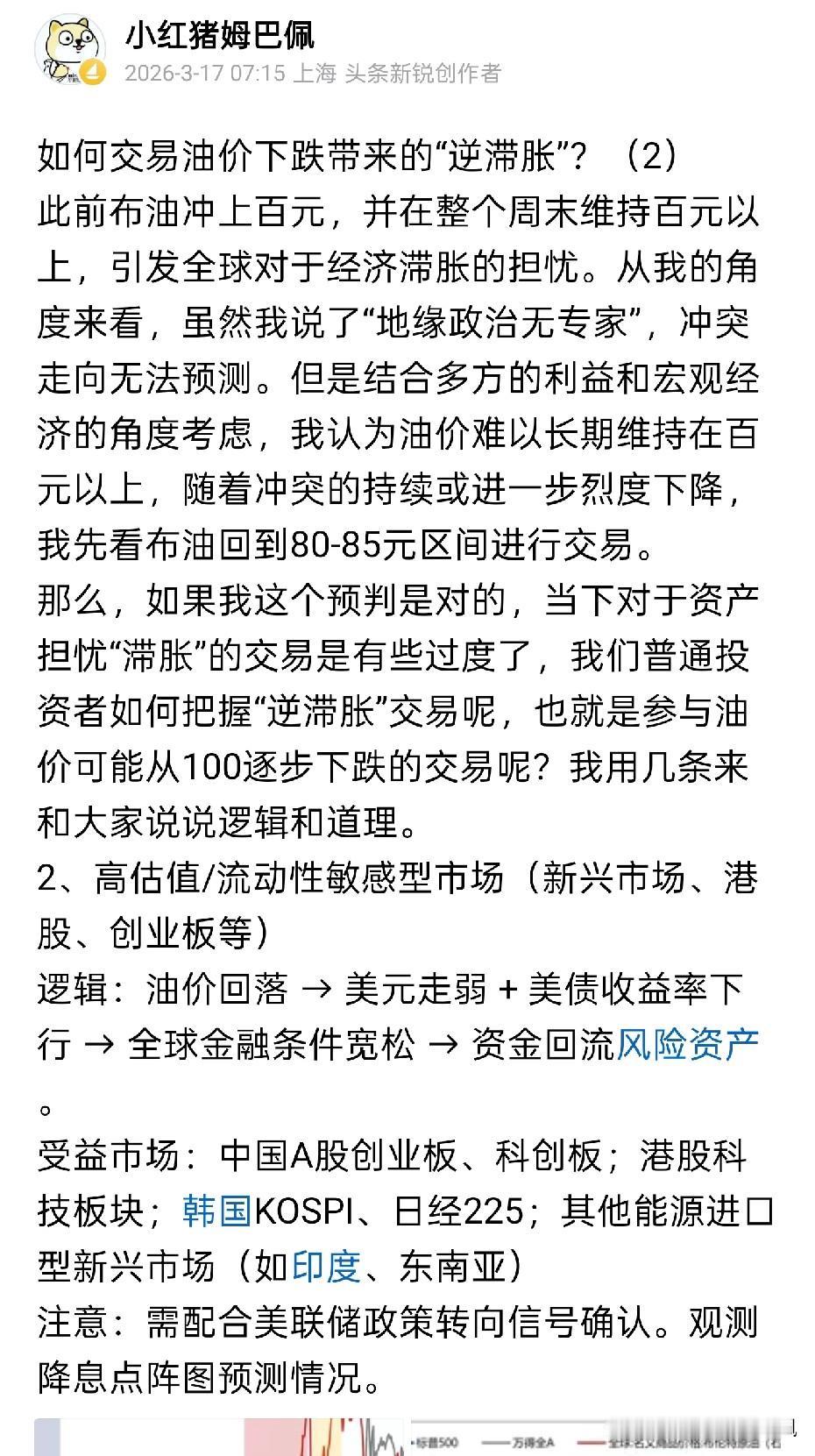 今天再带大家来回顾一下我在3月中旬和大家说的《一旦“战事放缓、油价回落”,如何交易逆滞胀》。其中在权益资产部分,我明确和大家说到,应该布局成长性资产和创业板及新兴市场。