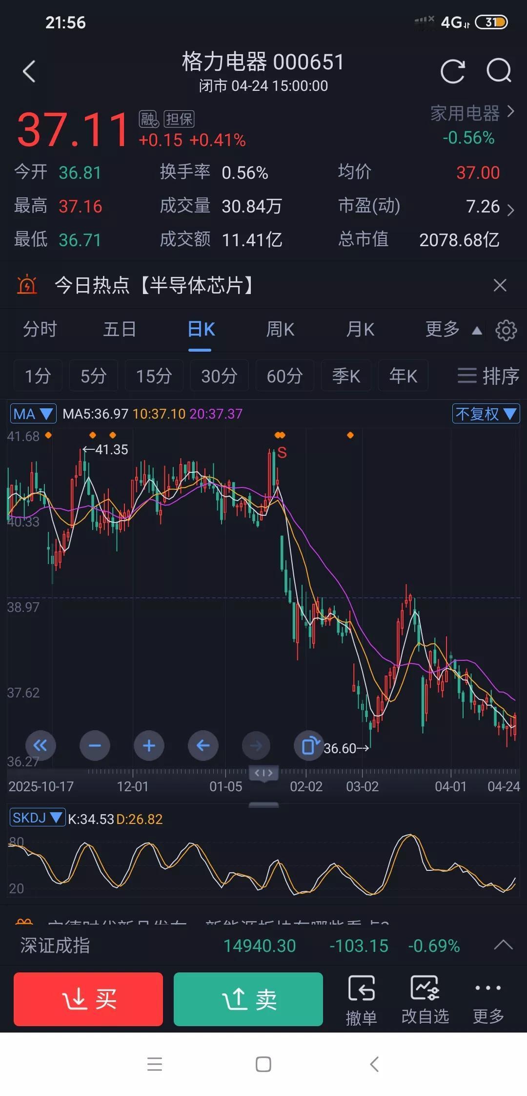 截至26年4月25日,它收盘价37.11元,总市值约2078亿元,市盈率7.26倍,处于近5年历史百分位仅1.17%,极度低估。股息率约7.5%,妥妥的高股息现金牛。而且ROE达15.16%,资本回报能力优秀。现在买入安全系数极高,最多可能是亏点时间。