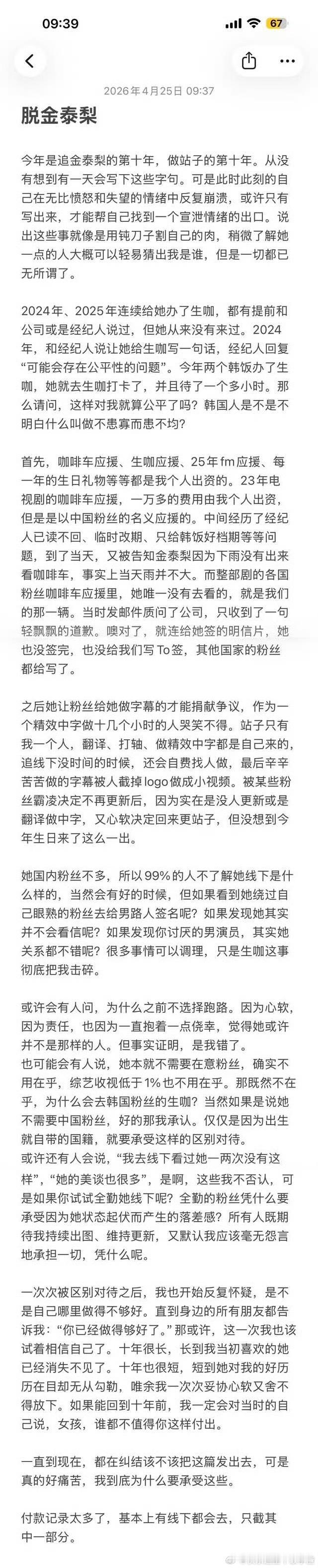 金泰梨 脱粉看完太心寒了 付出了钱和精力还被区别对待…… 谁的十年不是十年啊
