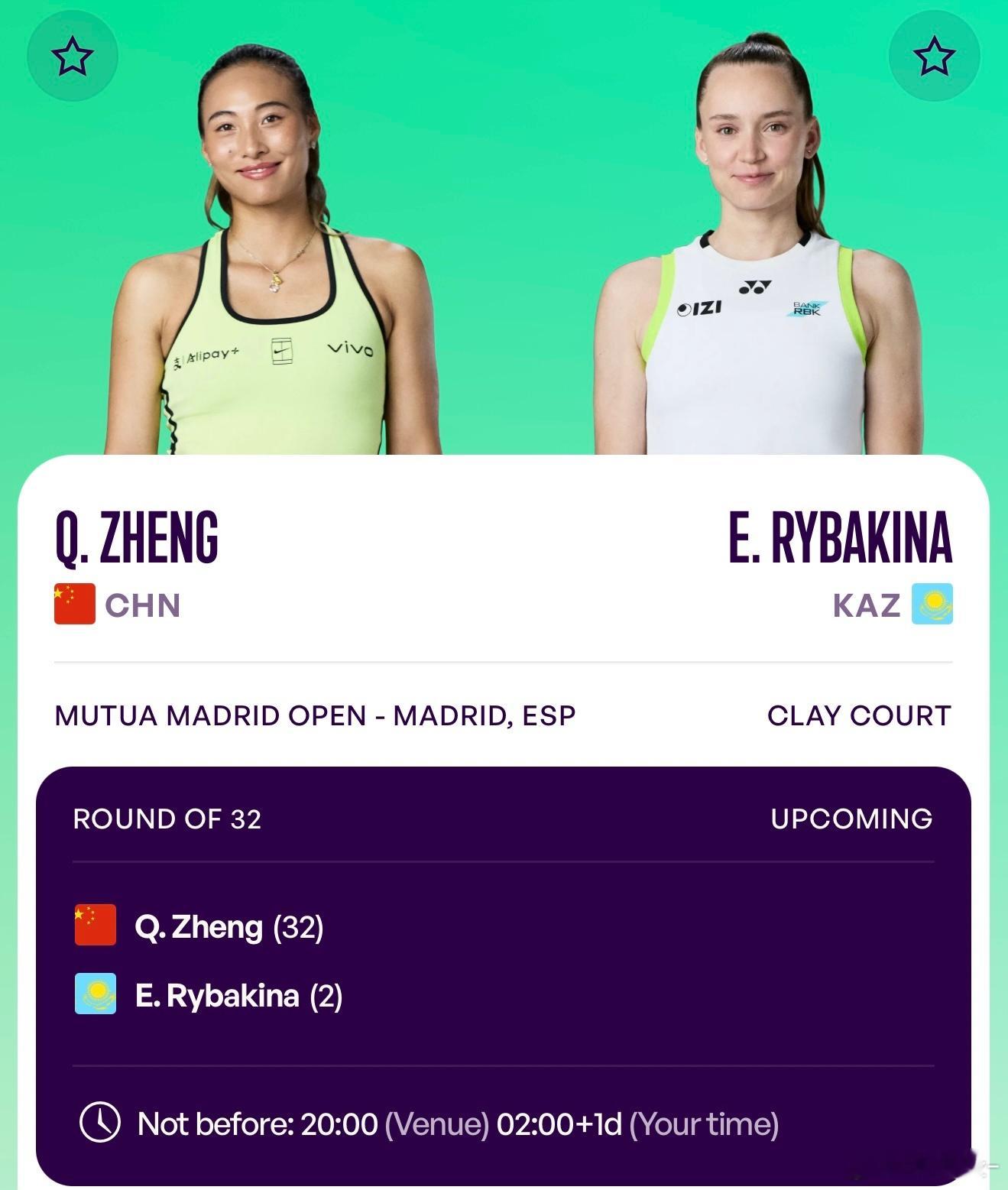 两人首次红土交手,文文加油!熬夜模式准备开启,一起为她打call~郑钦文马德里赛再战莱巴金娜