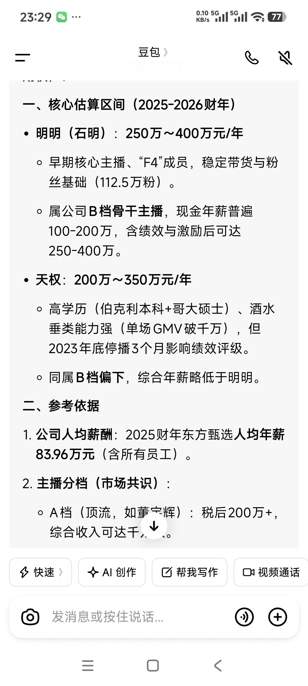 东方甄选主播明明(石明)年薪是400万(现已离职),主播天权年薪是350万(现已