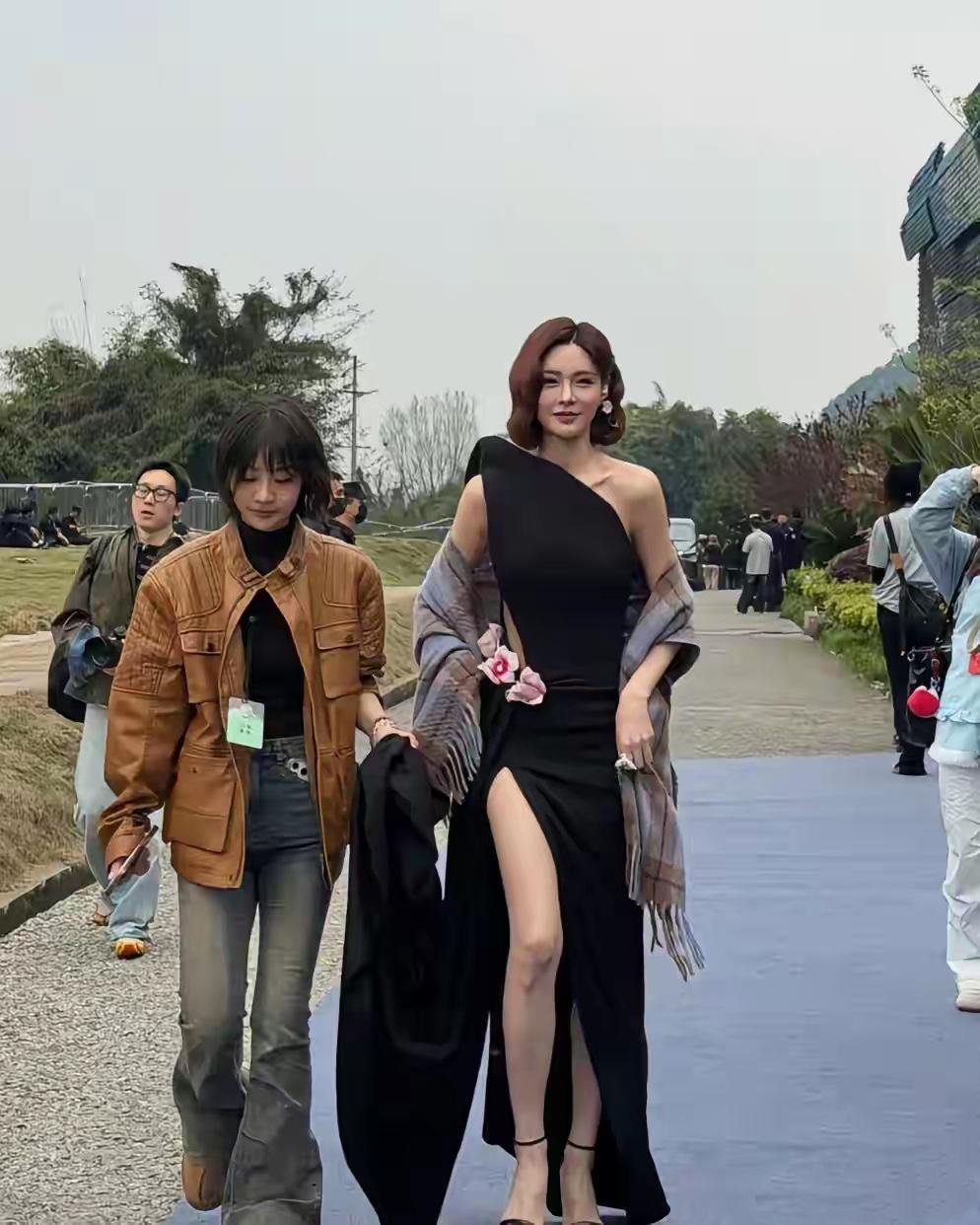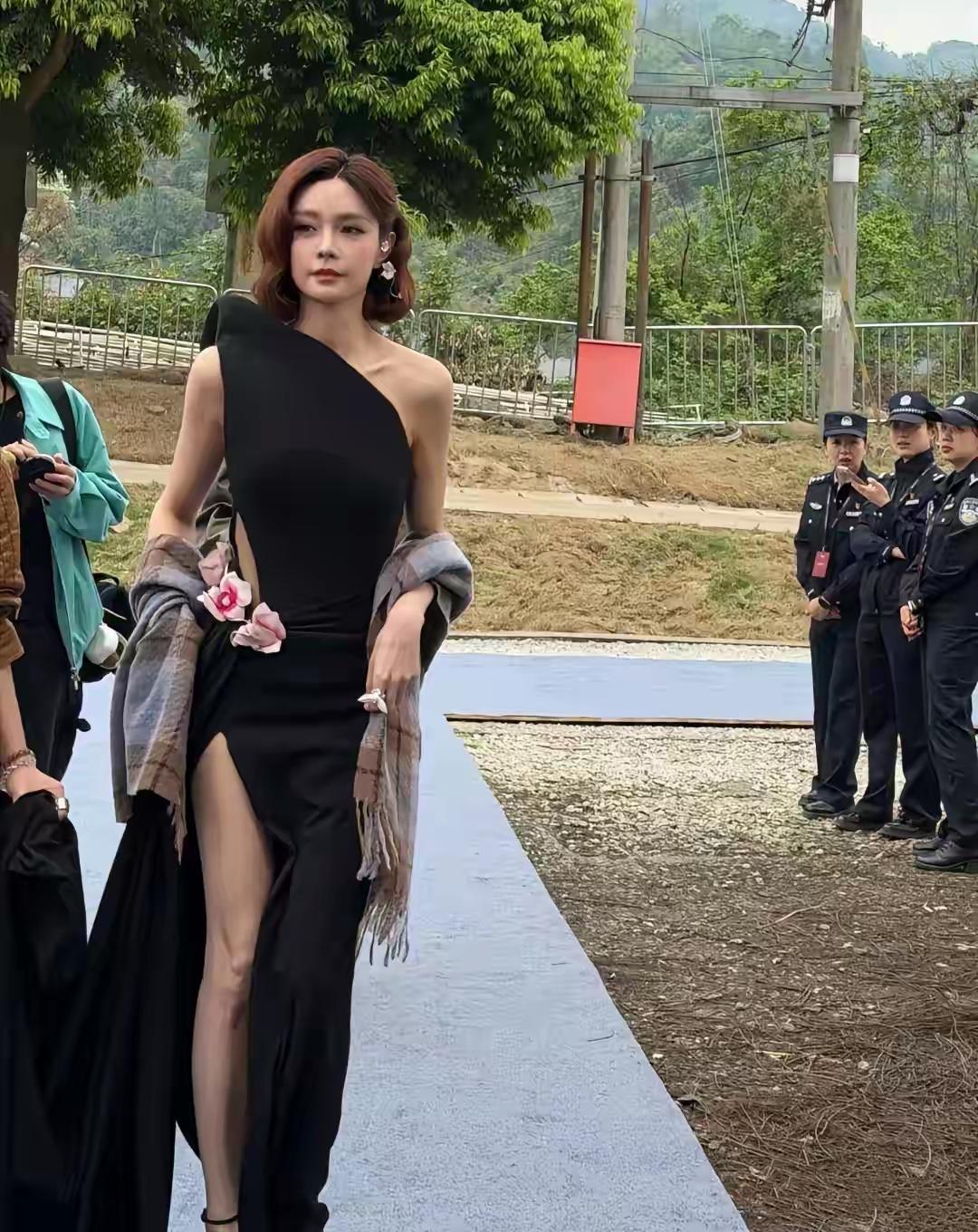 瑰姿艳逸的沈梦辰在四川出席活动被偶遇:镜头中37岁的沈梦辰身穿一袭高开叉黑裙,搭