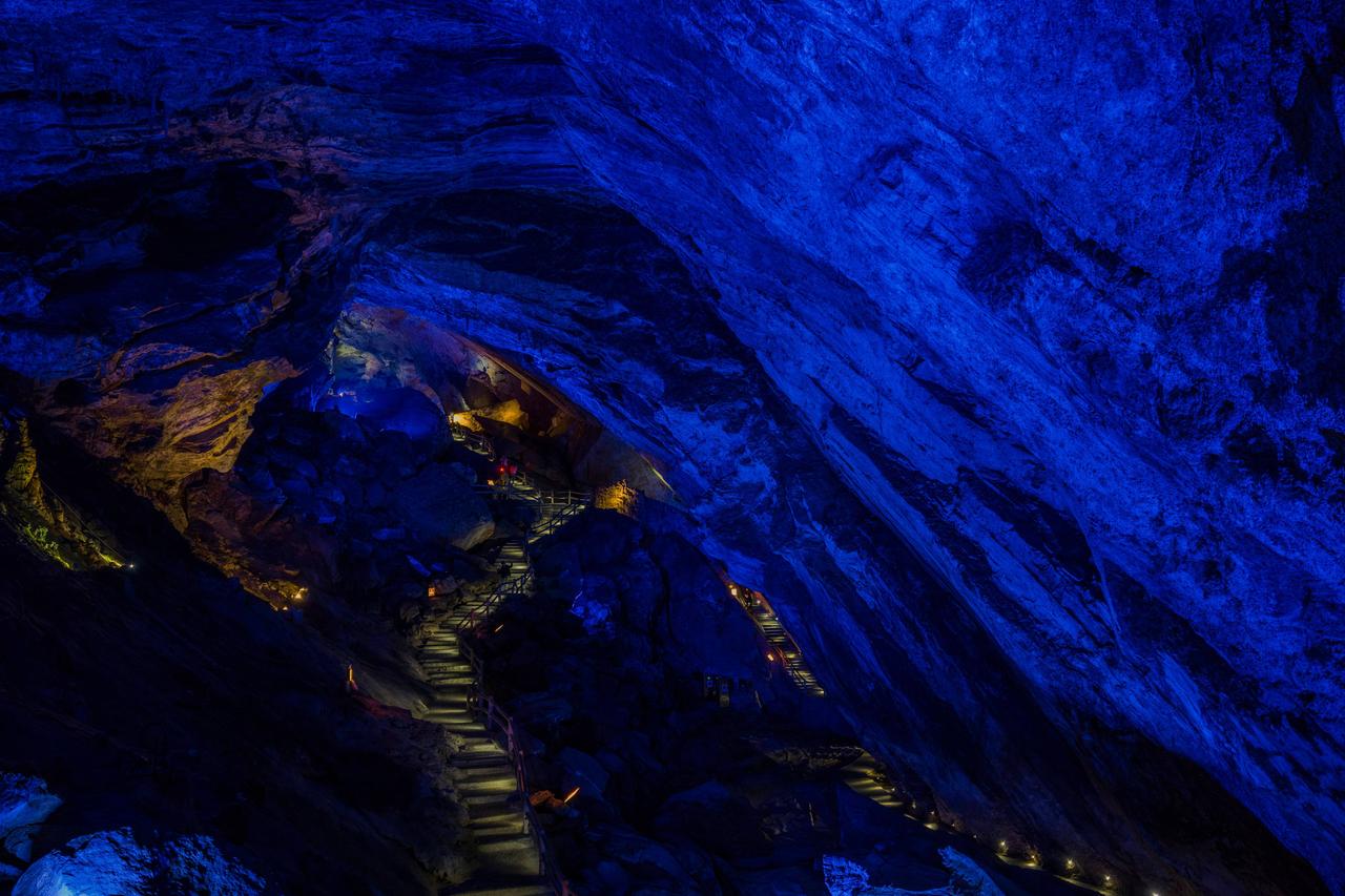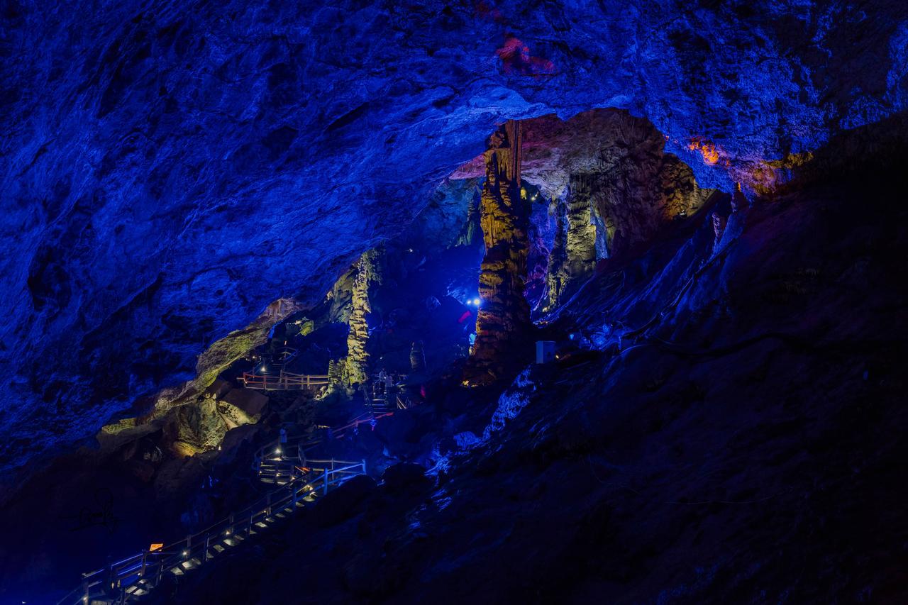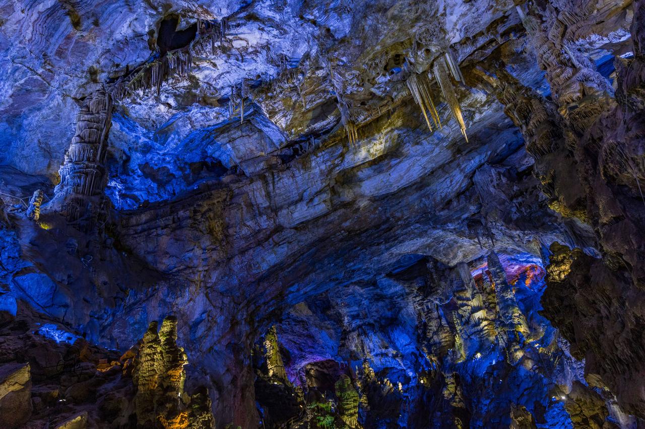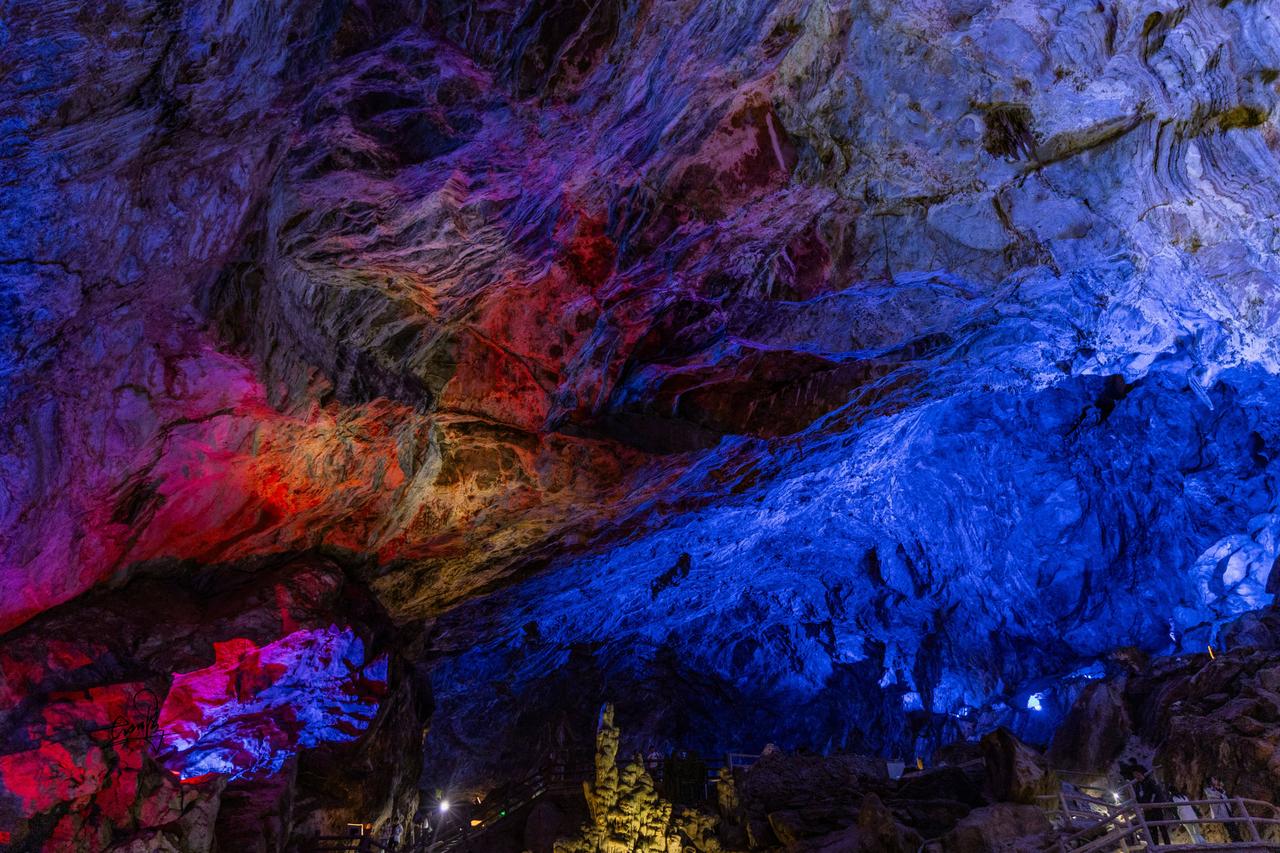 刚进洞口,狭小缝隙中微光闪烁,像武陵人邂逅时空裂隙,超有神秘感。拾级而上,石幔、钟乳形态各异,每一处岩壁都诉说着亿万年的故事。