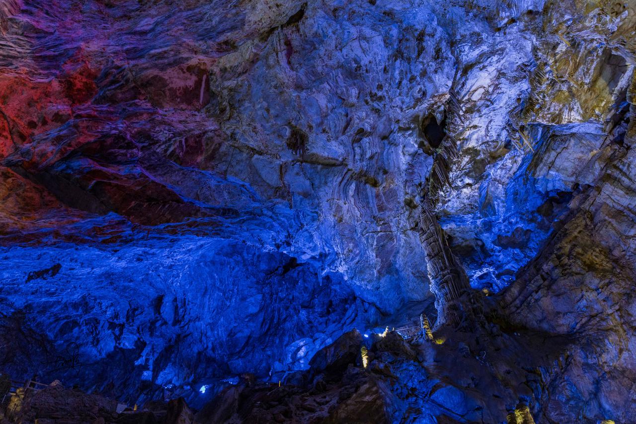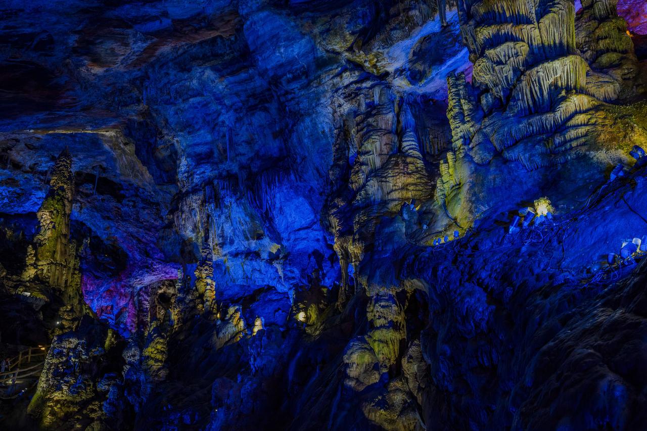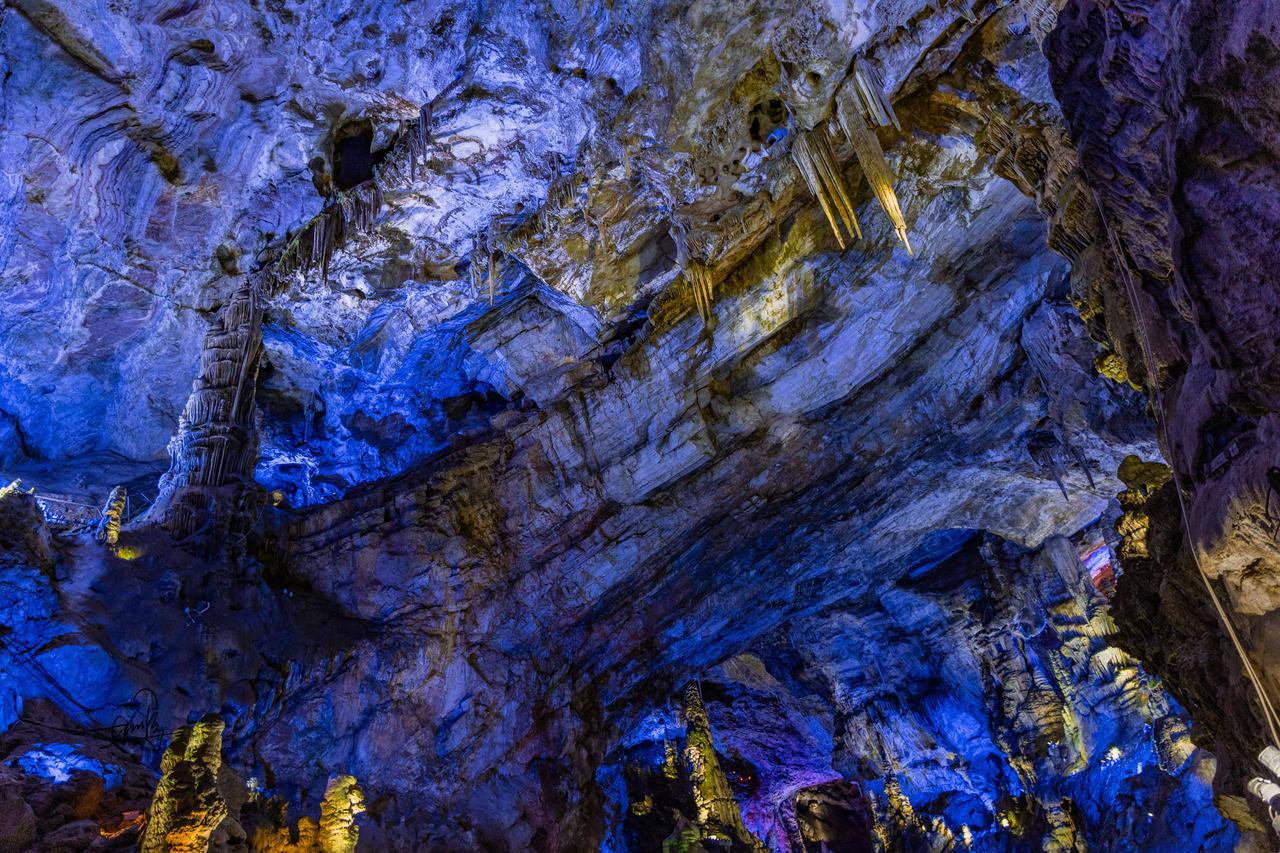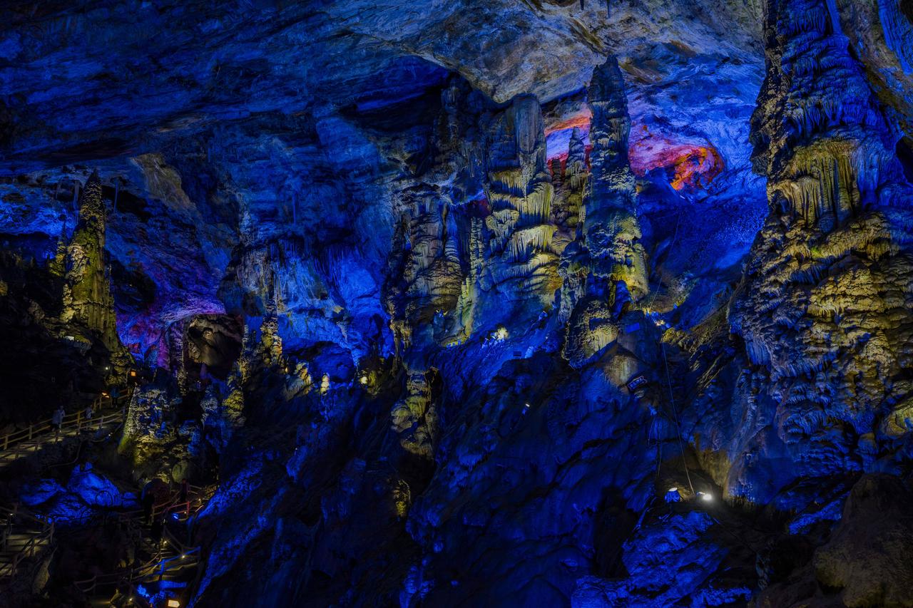 刚进洞口,狭小缝隙中微光闪烁,像武陵人邂逅时空裂隙,超有神秘感。拾级而上,石幔、钟乳形态各异,每一处岩壁都诉说着亿万年的故事。