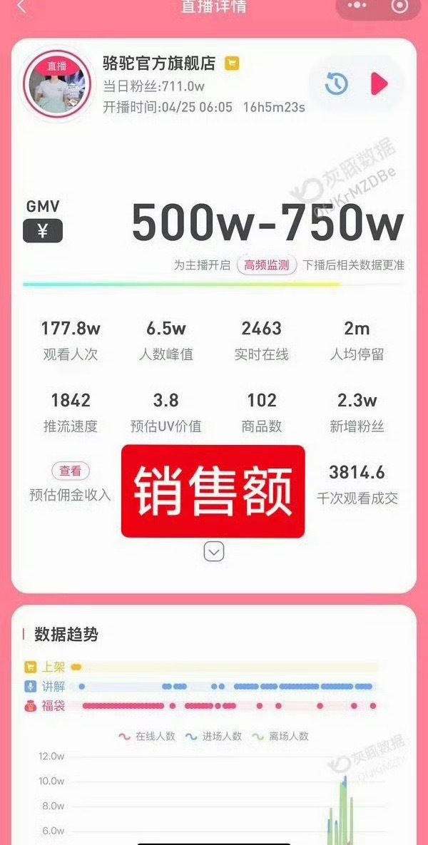 热巴直播一个店的销售额,还是有这么多店铺分流的情况下500w-750w,有没有经常蹲直播的小伙伴来说一下这是什么水平
