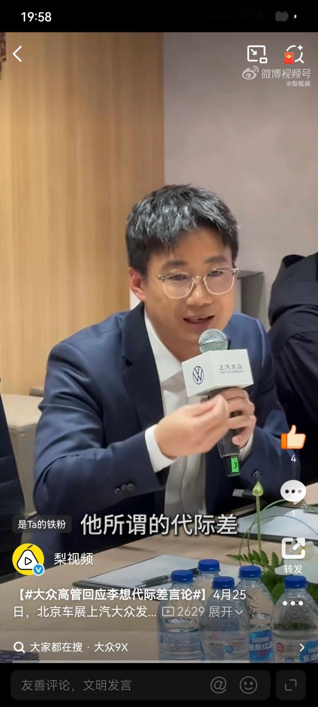 大众高管回应李想代际差言论李想称“领先两代”,大众高管回怼“路线不同”。新势力拼