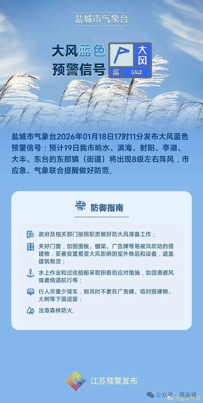 1月18日,江苏省气象局启动重大气象灾害(寒潮)Ⅳ级应急响应命令: