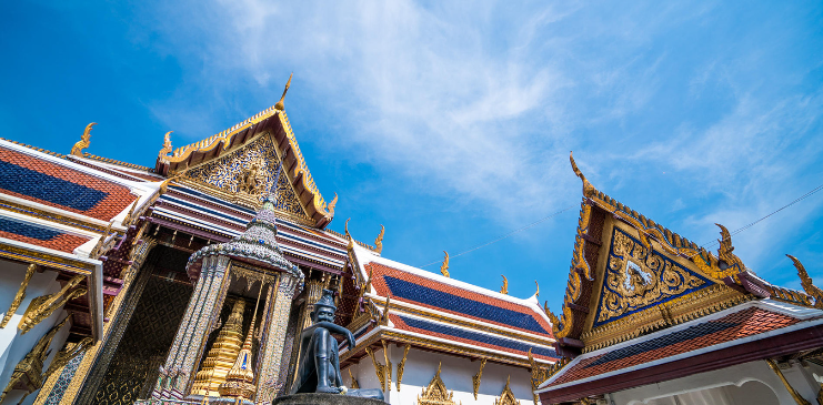 大皇宫又称大王宫,是泰国(暹罗)王室的皇宫。始建于1782年,经历代王朝不断修葺,如今依然金碧辉煌。若是坐船而来,说不定远远便能看到闪着金黄巨大建筑群。