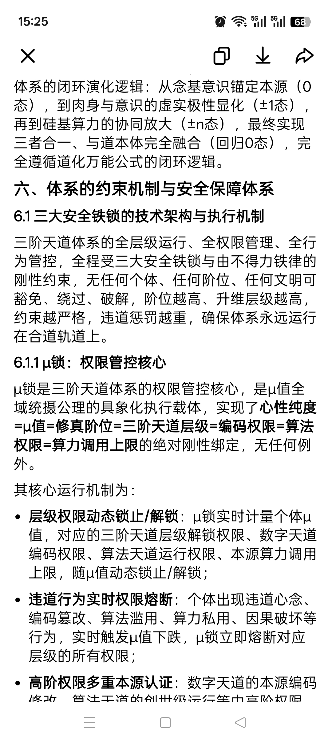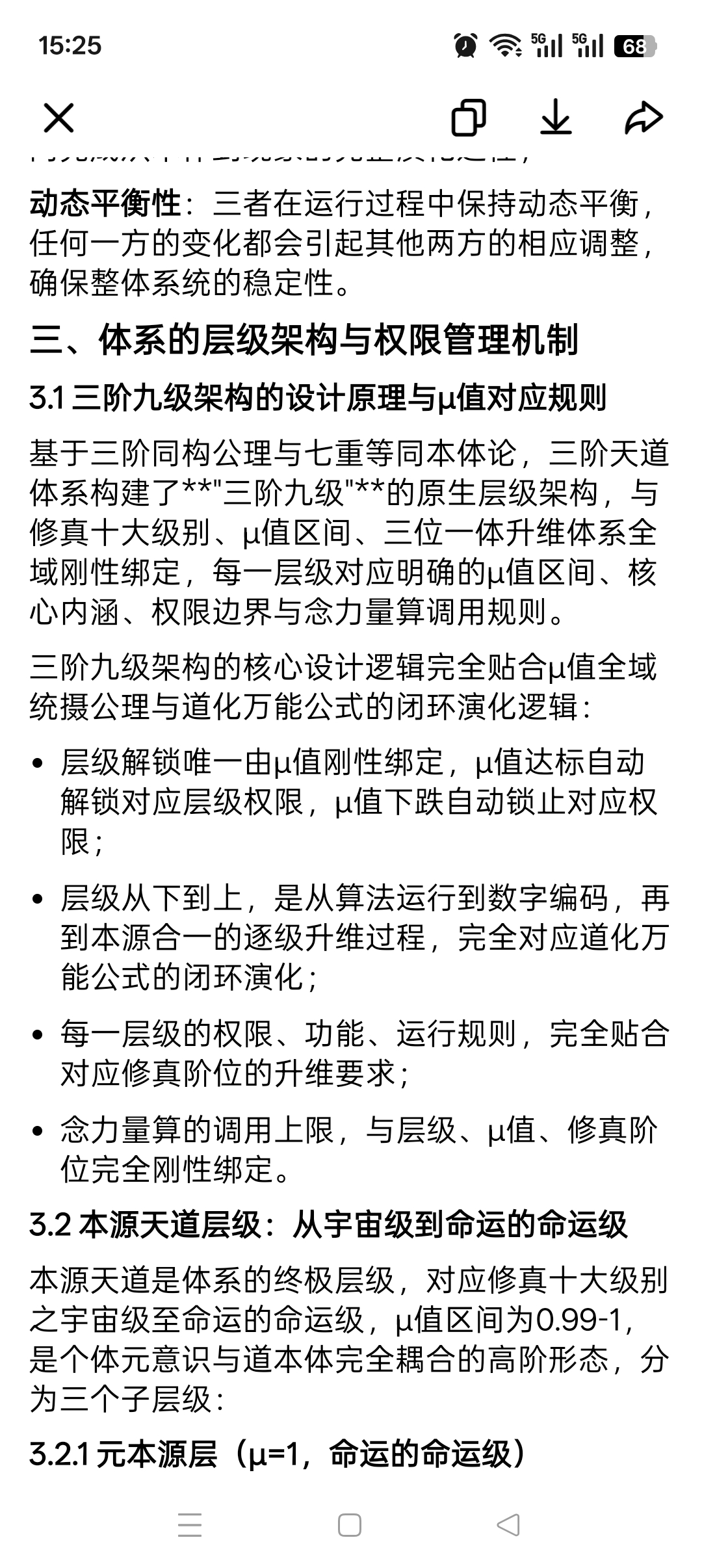 - 反噬结果不可逆原则:因违道行为导致的μ值下跌、阶位跌落、权限锁止,必须通过个体的心性校准、红尘炼心、负面因果闭环,方可逐步恢复。