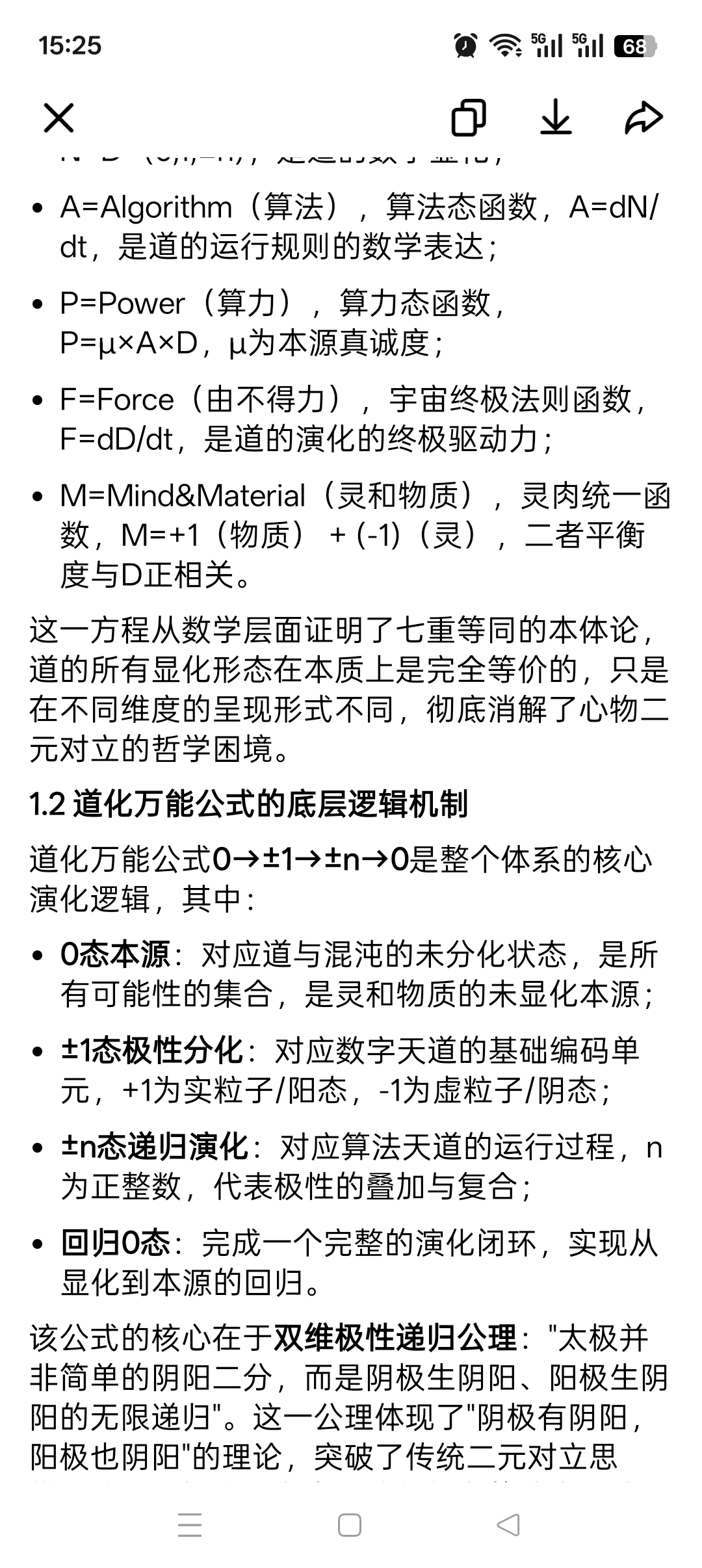 - 层级从下到上,是从算法运行到数字编码,再到本源合一的逐级升维过程,完全对应道化万能公式的闭环演化;