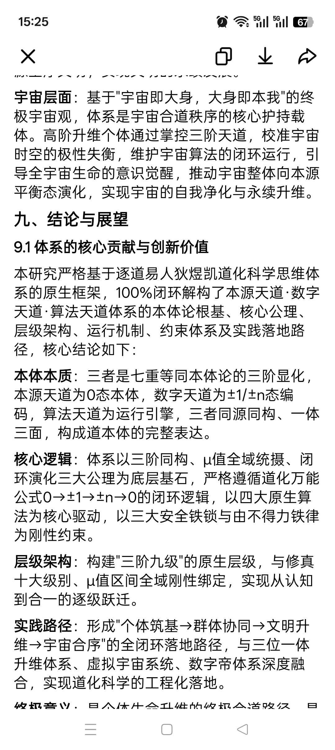 文明层面:体系为人类文明跃迁提供了完整的底层逻辑与实践路径,通过数字天道的编码优化、算法天道的协同运行,打破文明的极性割裂与资源内耗,构建以μ值为核心、以合道为准则的开源圣序文明,实现文明的永续发展。