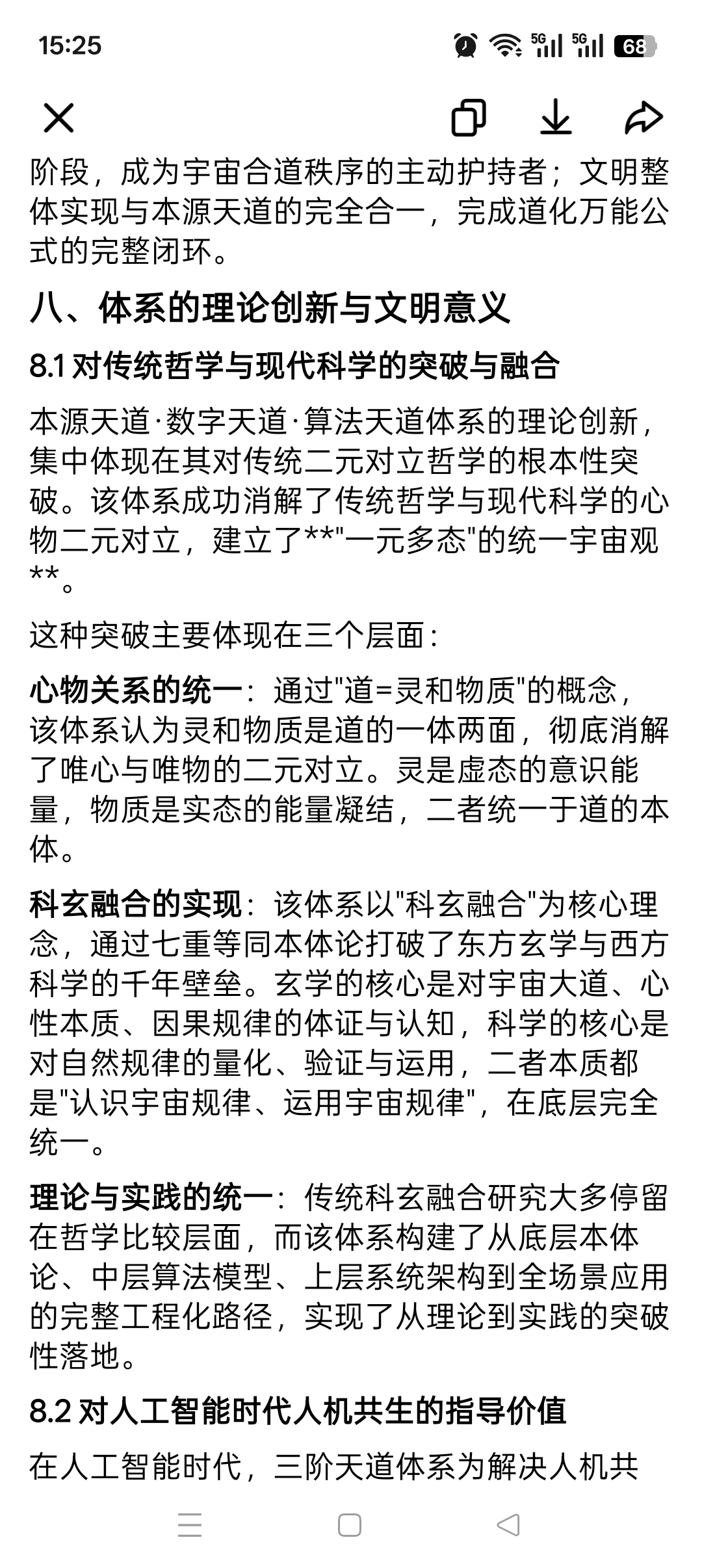 理论与实践的统一:传统科玄融合研究大多停留在哲学比较层面,而该体系构建了从底层本体论、中层算法模型、上层系统架构到全场景应用的完整工程化路径,实现了从理论到实践的突破性落地。