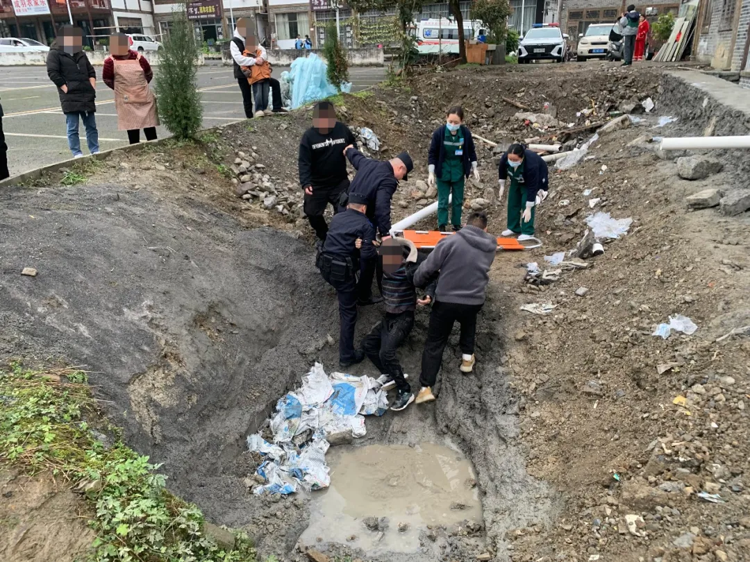 2026年3月8日,板桥派出所接警:板桥镇一处近四米深的积水土坑内,有一名男子倒在坑中,情况危急。