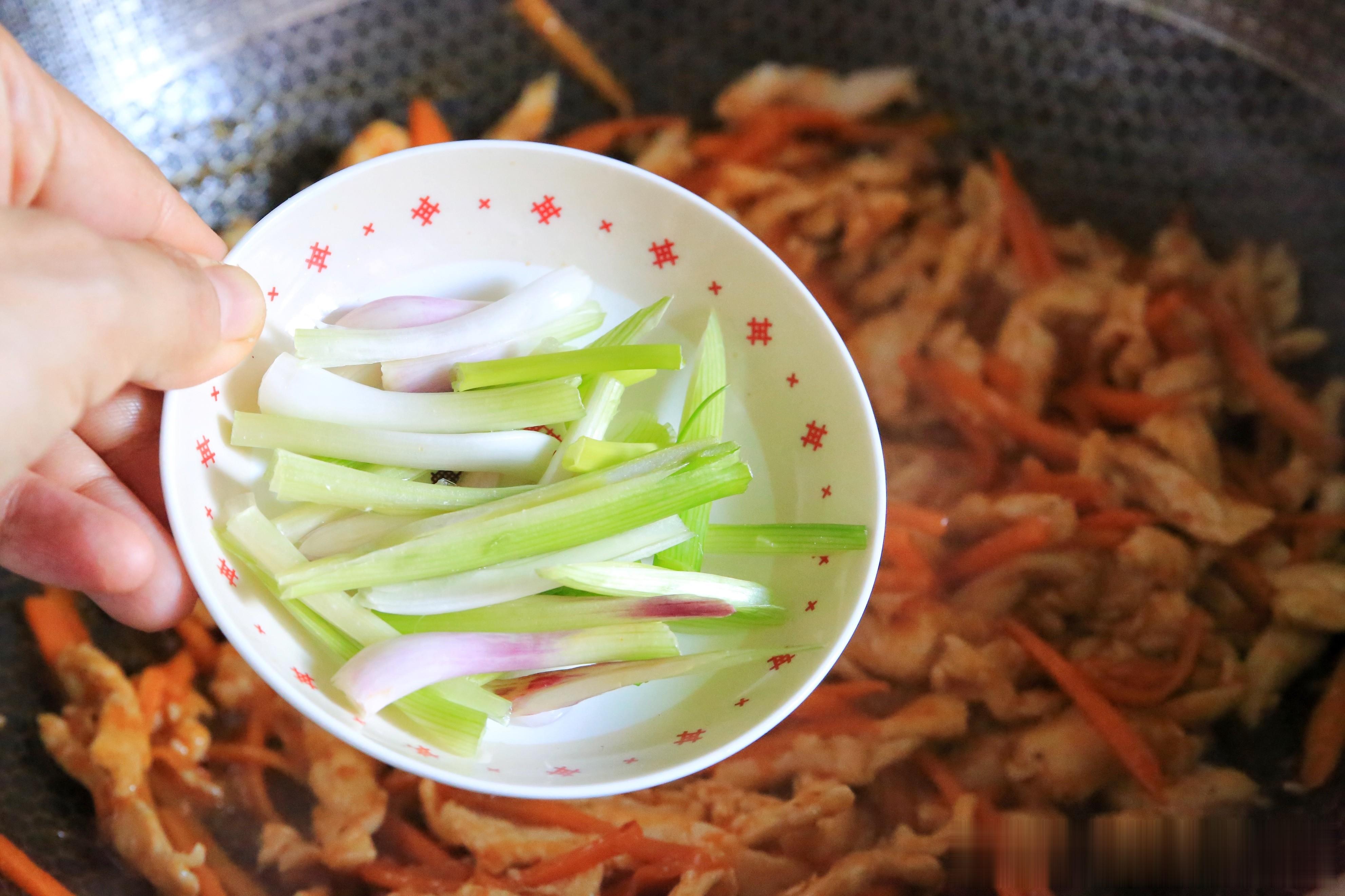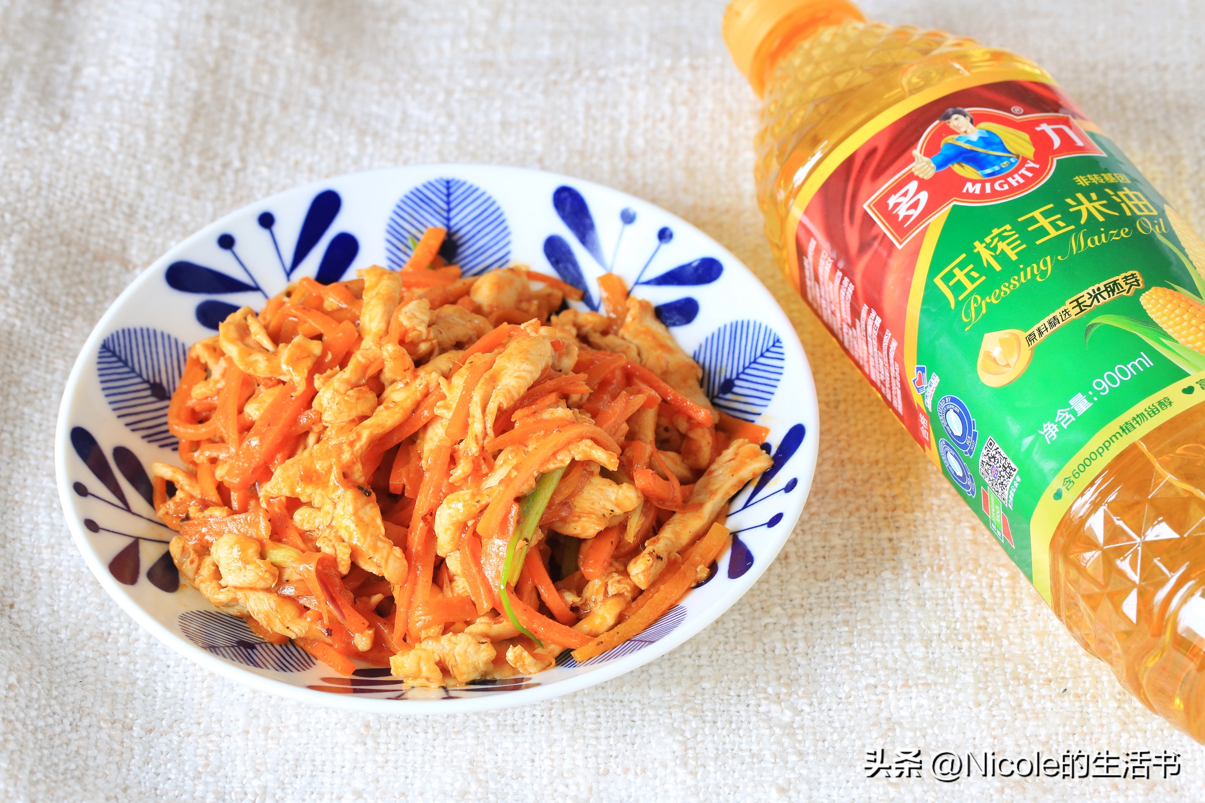 鸡胸切丝,胡萝卜切丝,姜切末,葱切丝