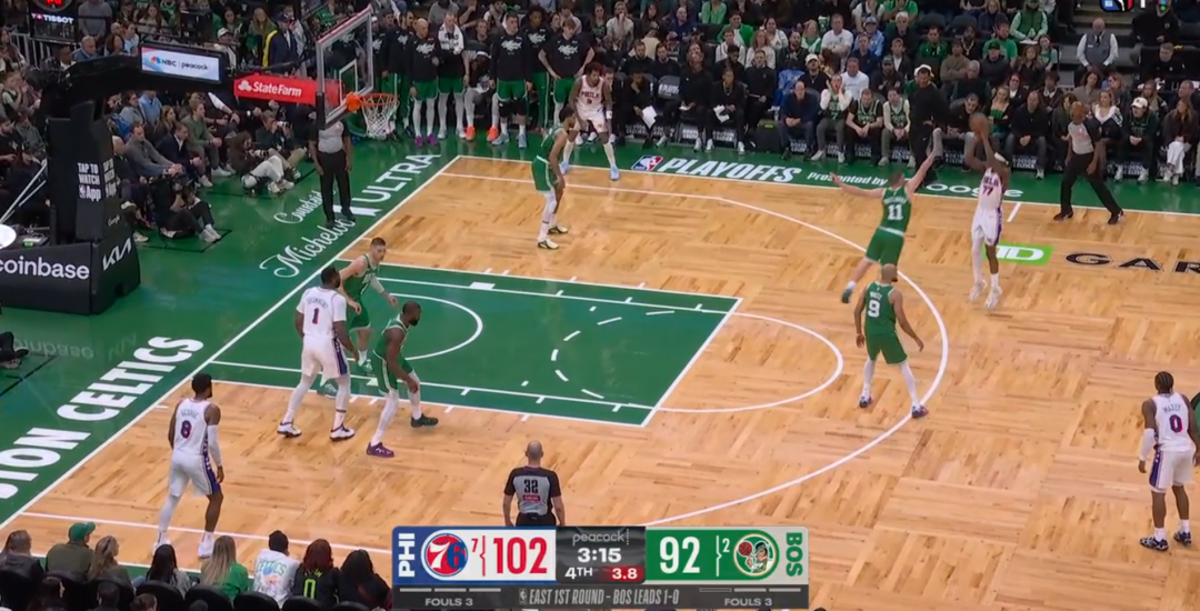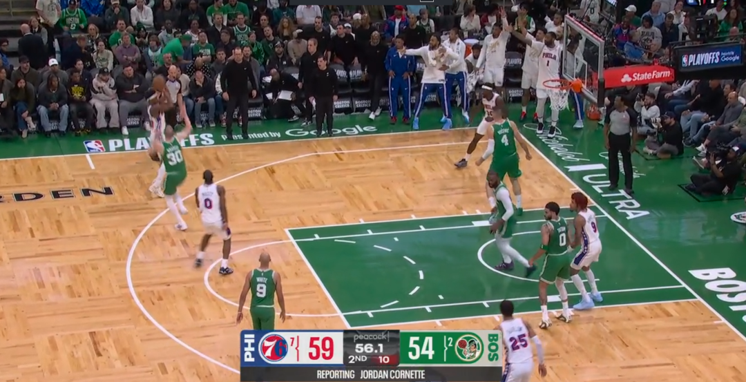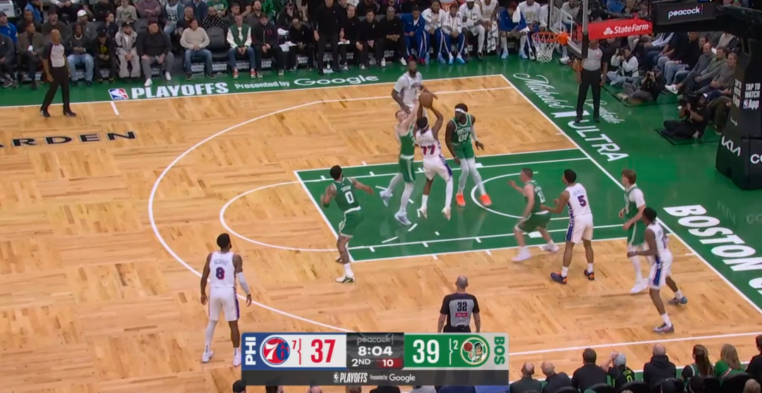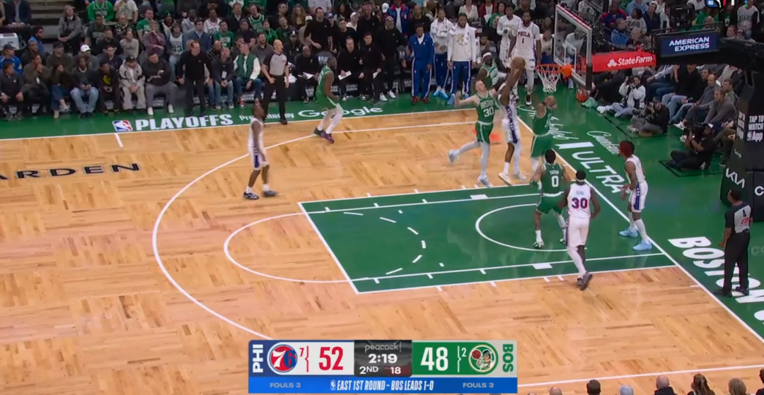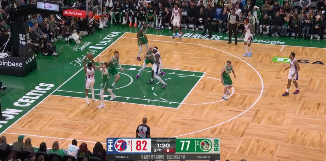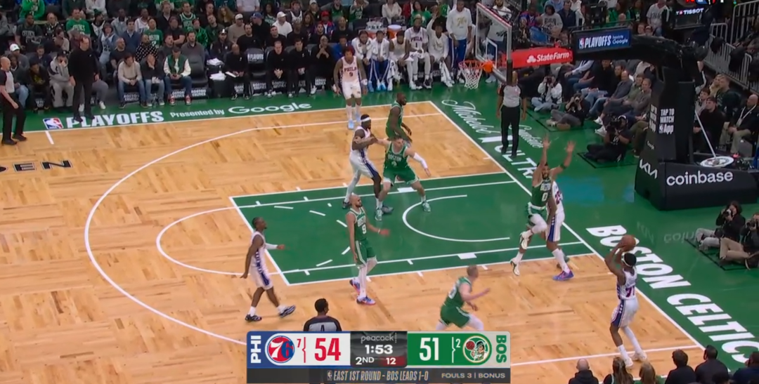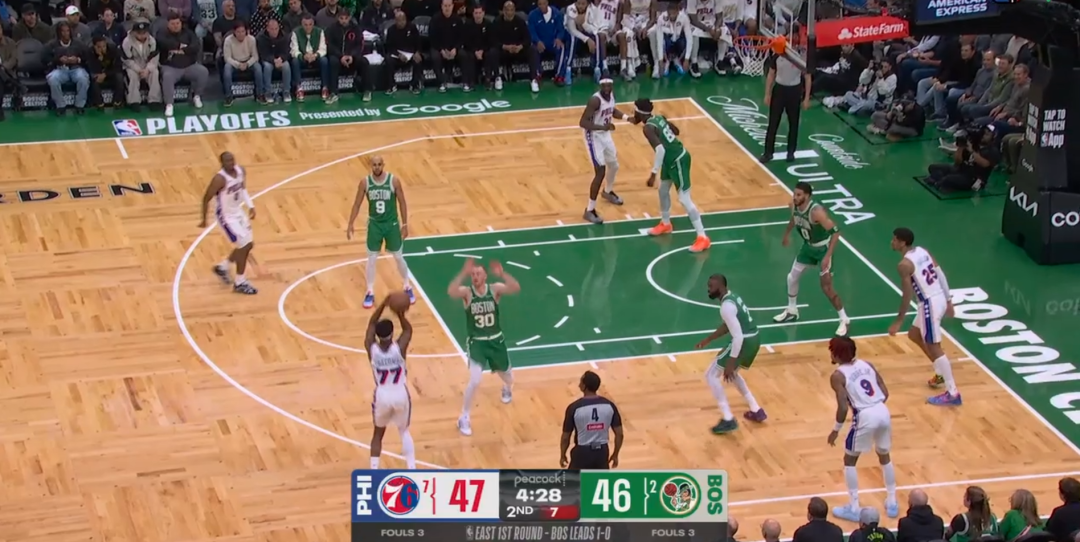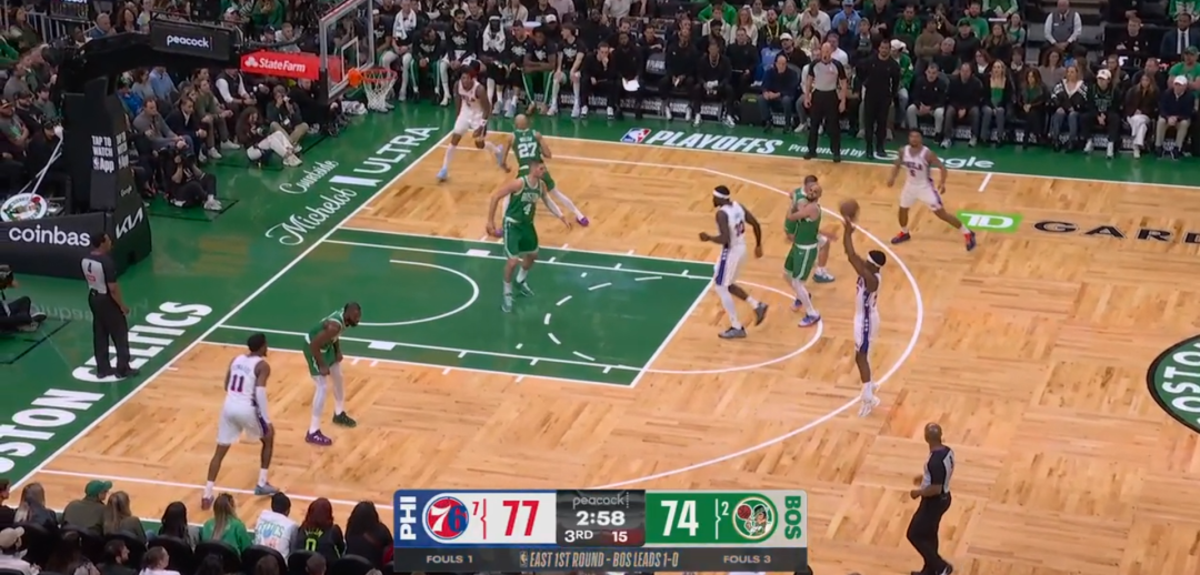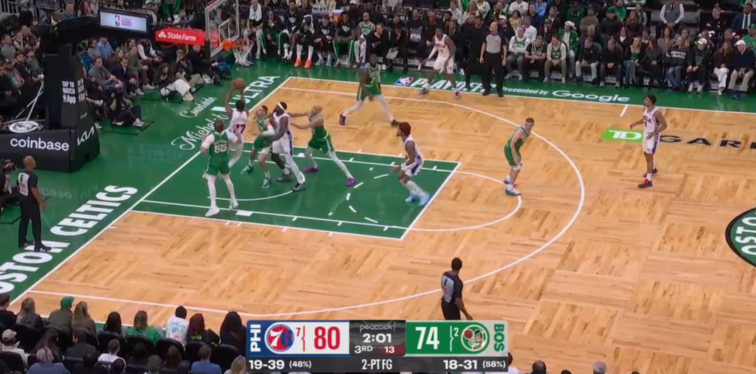 这节看下来很明显的一个感觉就是,凯尔特人过于忌惮马克西的威胁,导致对于埃奇库姆的防守不够重视,甚至有些刻意放空,然后硬生生把埃奇库姆的手感培养了起来,这一情况直到第三节依然没有改变,埃奇库姆的持球三分甚至无人防守。