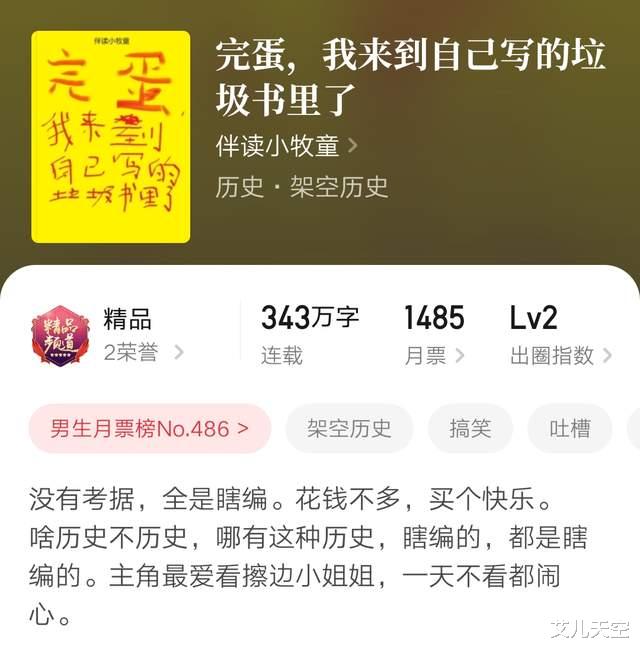 4、《完蛋,我来到自己写的垃圾书里了》343万字完本