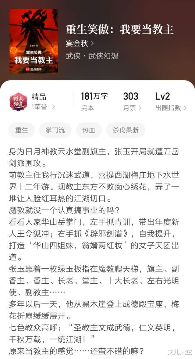 5、《重生笑傲:我要当教主》181万字完本