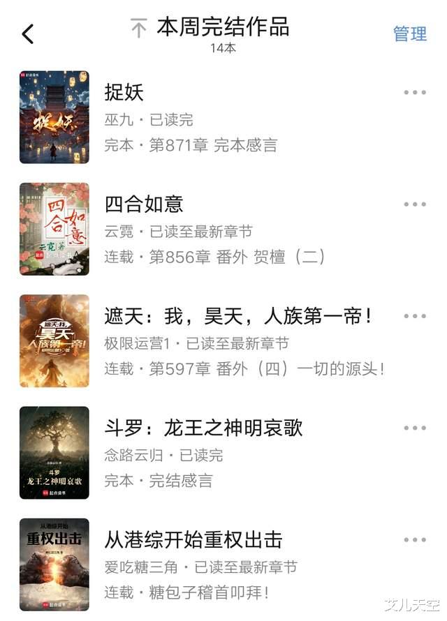 以上就是这周完结的一些小说了,没有特别热门的,我也多是浅尝辄止,如果其中有大家比较熟悉的,欢迎留言。